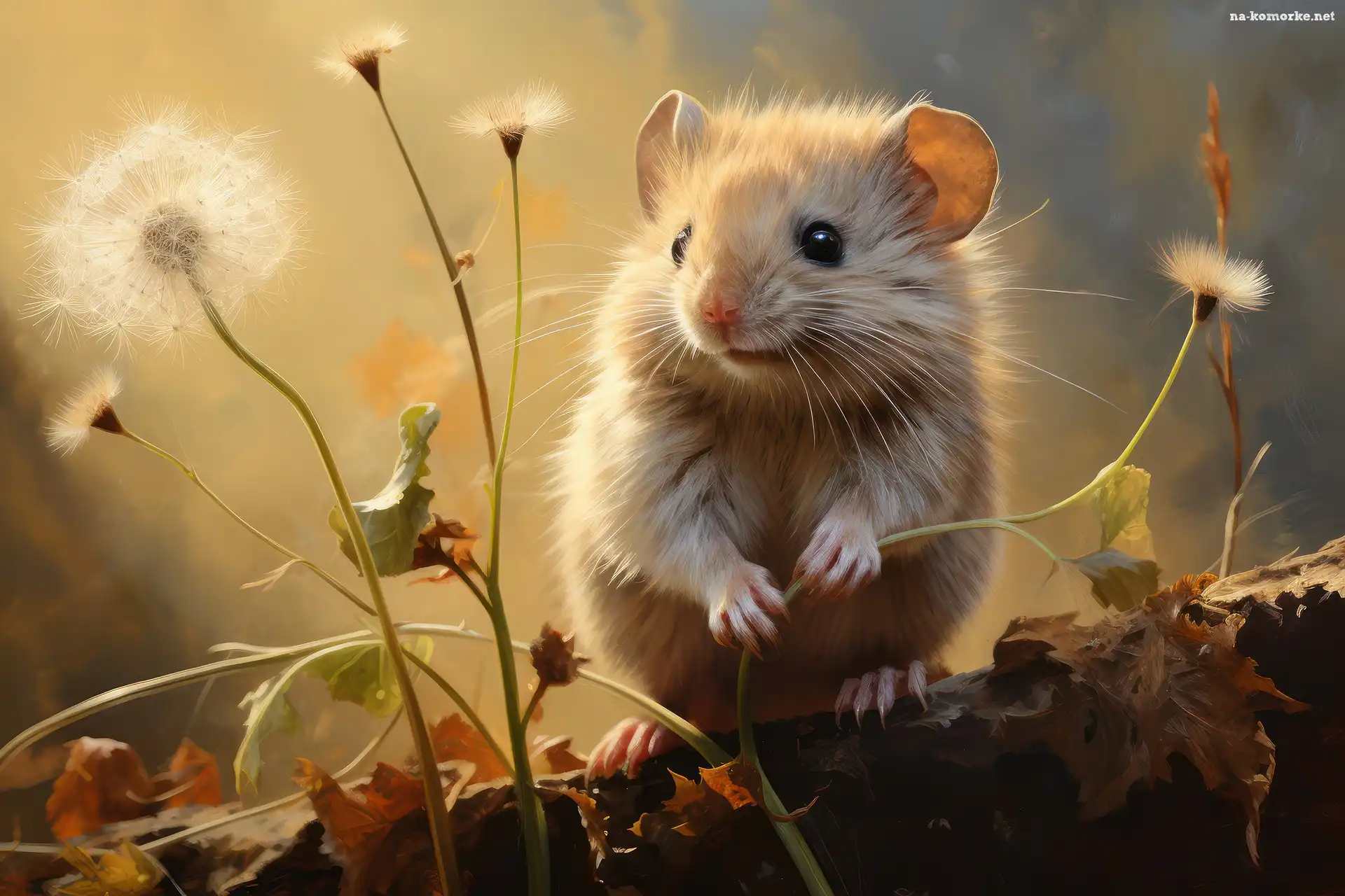 Liście, Konar, Myszka, Dmuchawce na Komórkę