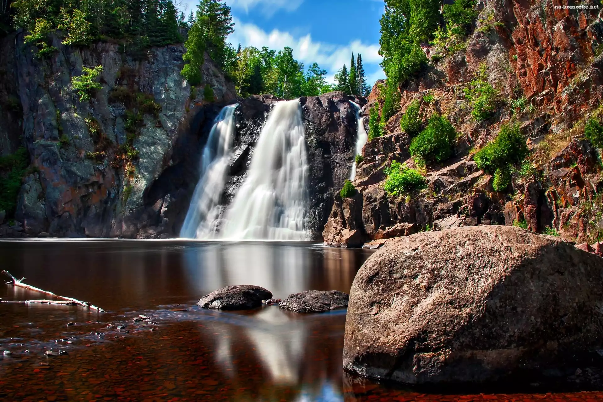 Dno, Wodospad, Skały, Woda, Kamienie na Komórkę