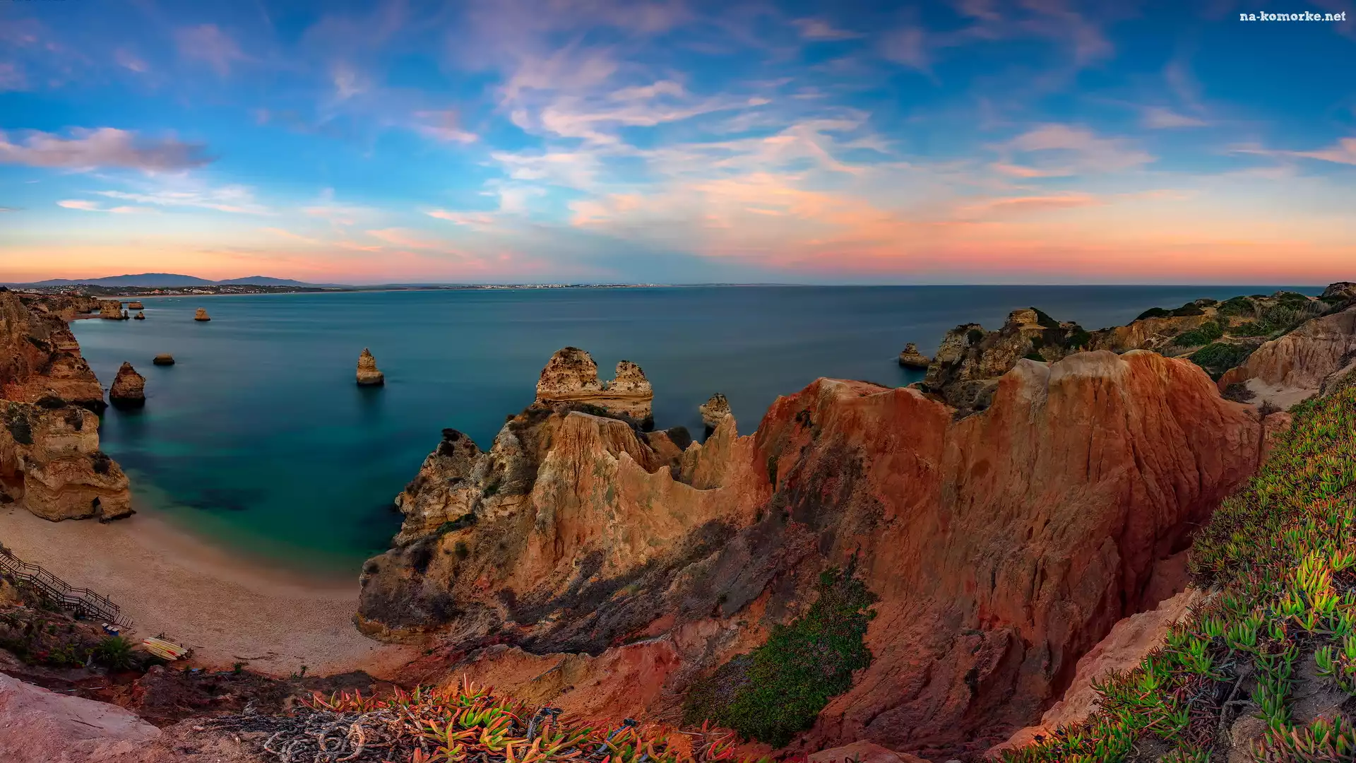 Lagos, Morze, Praia do Camilo, Portugalia, Plaża, Skały na Komórkę