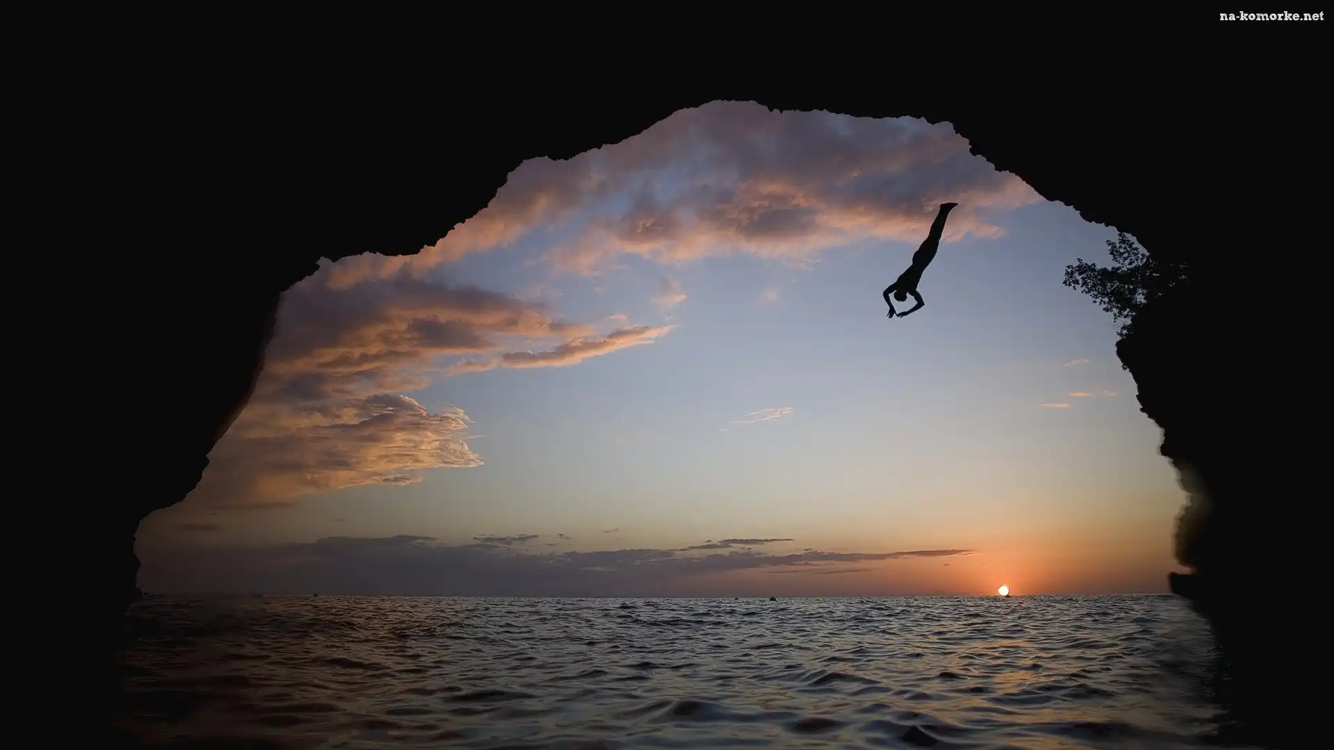 Morze, Do, Wody, Skała, Zachód, Słońca, Skok na Komórkę