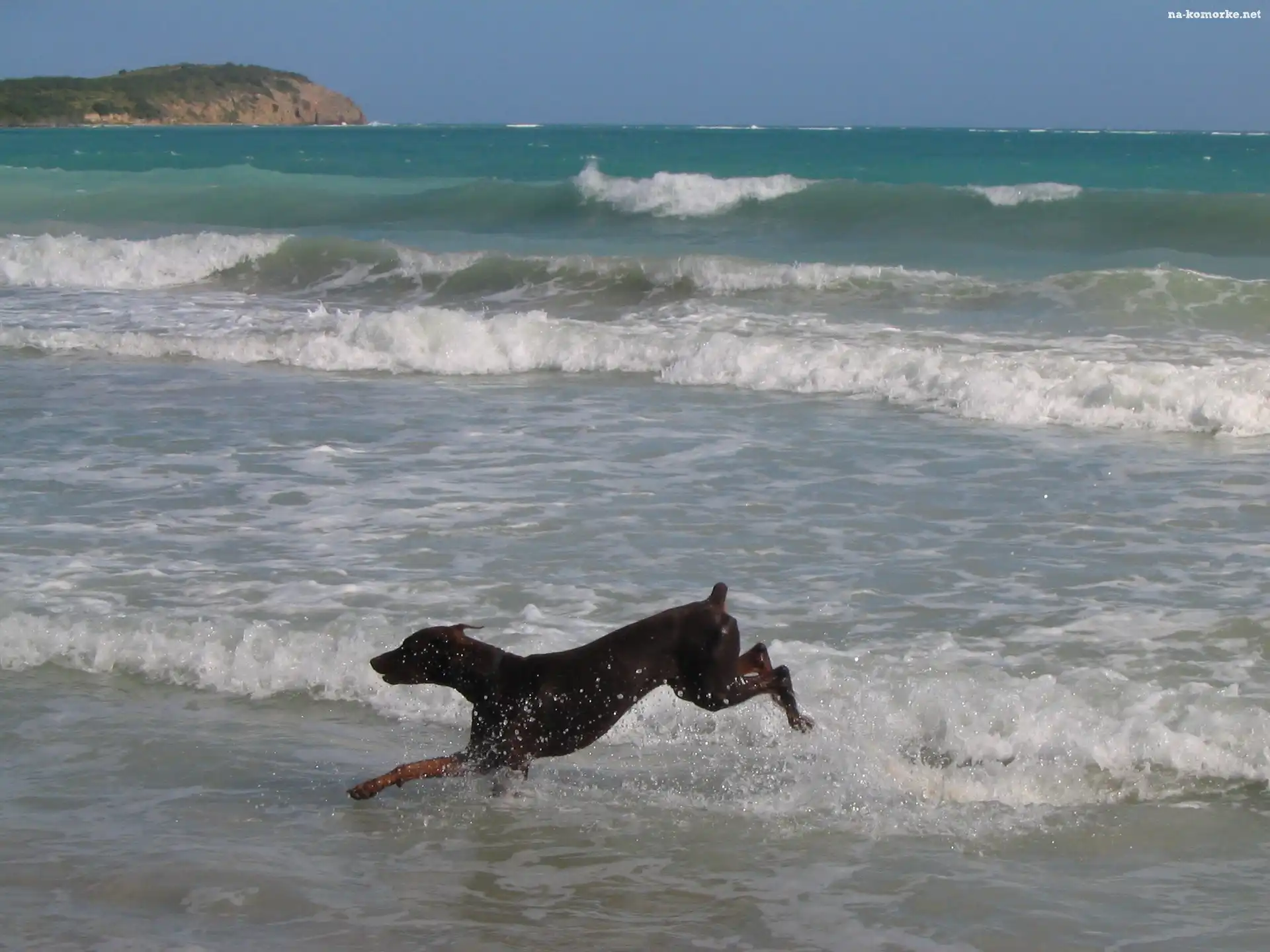 Biegnący, Doberman, Plaża na Komórkę