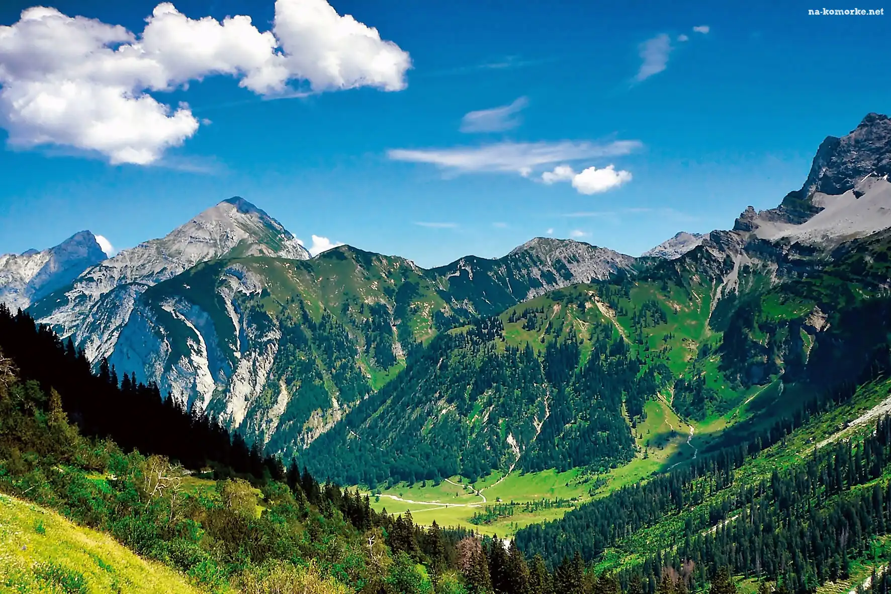 Dolina, Tyrol, Góry, Lasy, Łąki na Komórkę