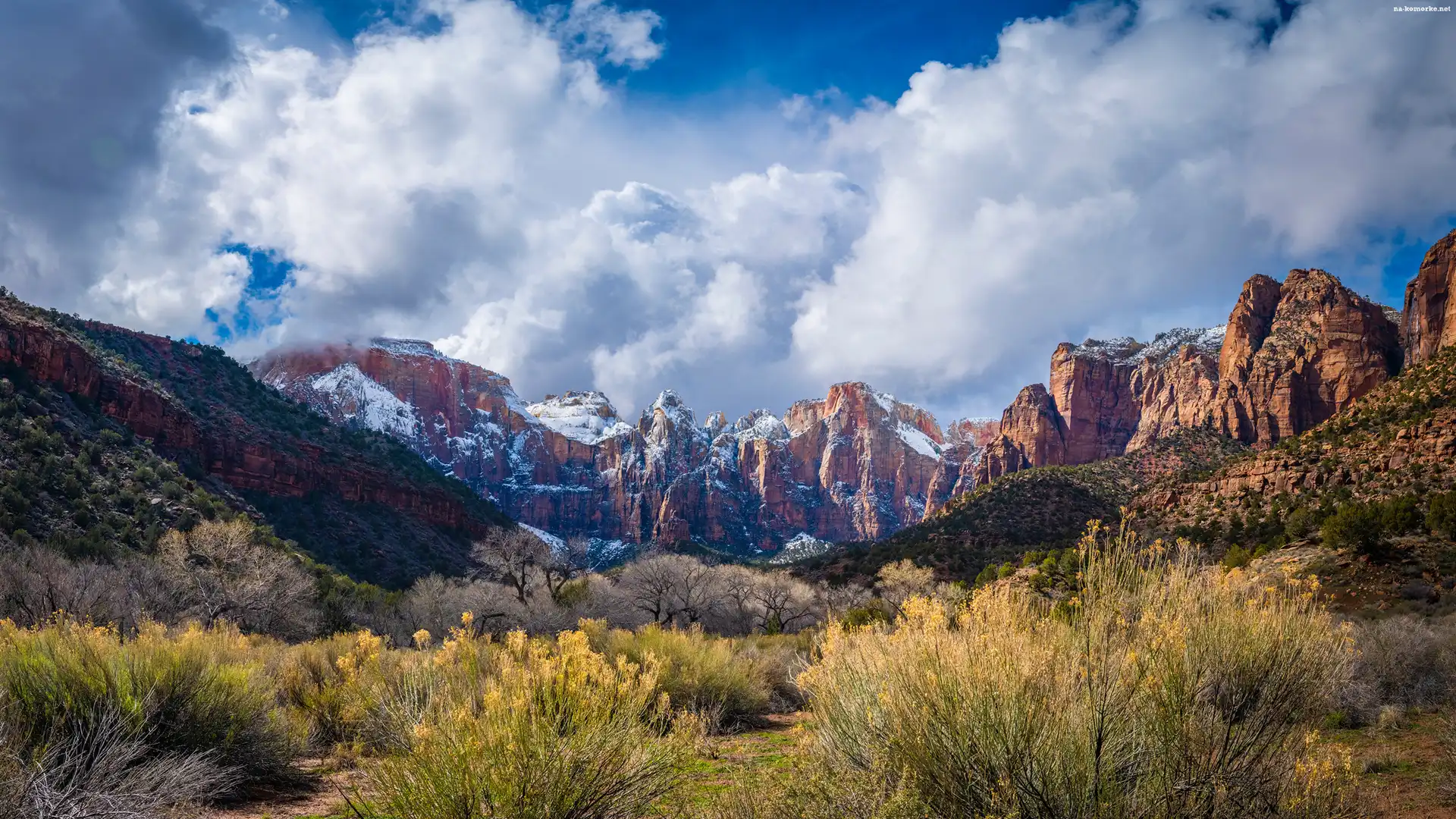 Chmury, Dolina, Skały, Góry, Roślinność na Komórkę