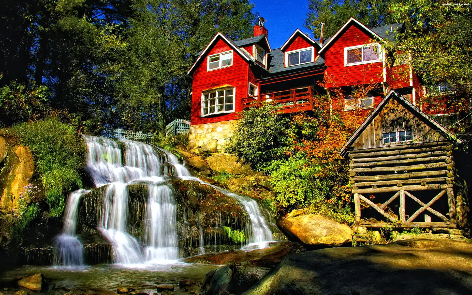 Czerwony, Dom, Wodospad na Komórkę