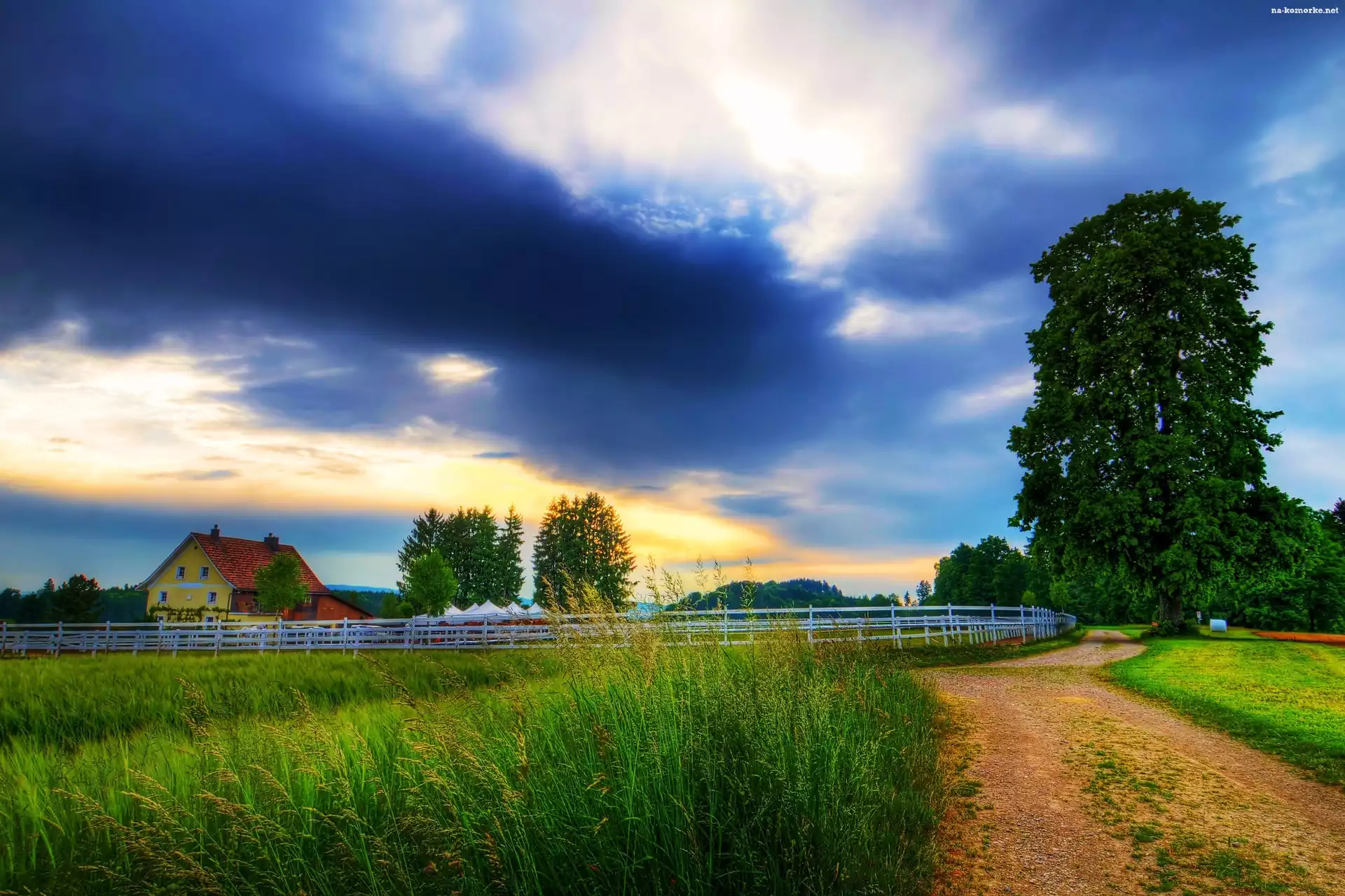 Dom, Wioska, Wieś, Droga, Drzewa na Komórkę
