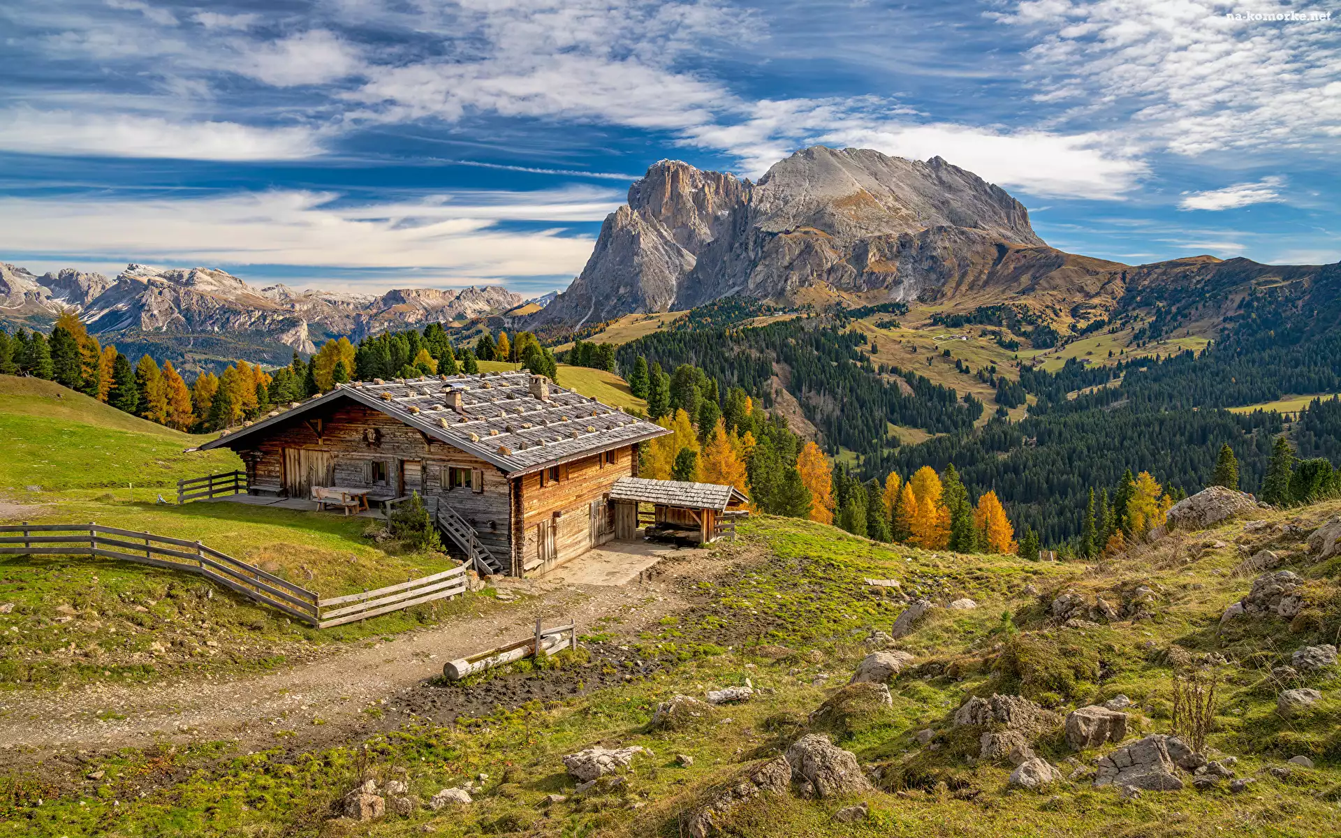 Dom, Sassolungo, Kamienie, Dolomity, Góry, Południowy Tyrol, Włochy, Drzewa, Ogrodzenie na Komórkę