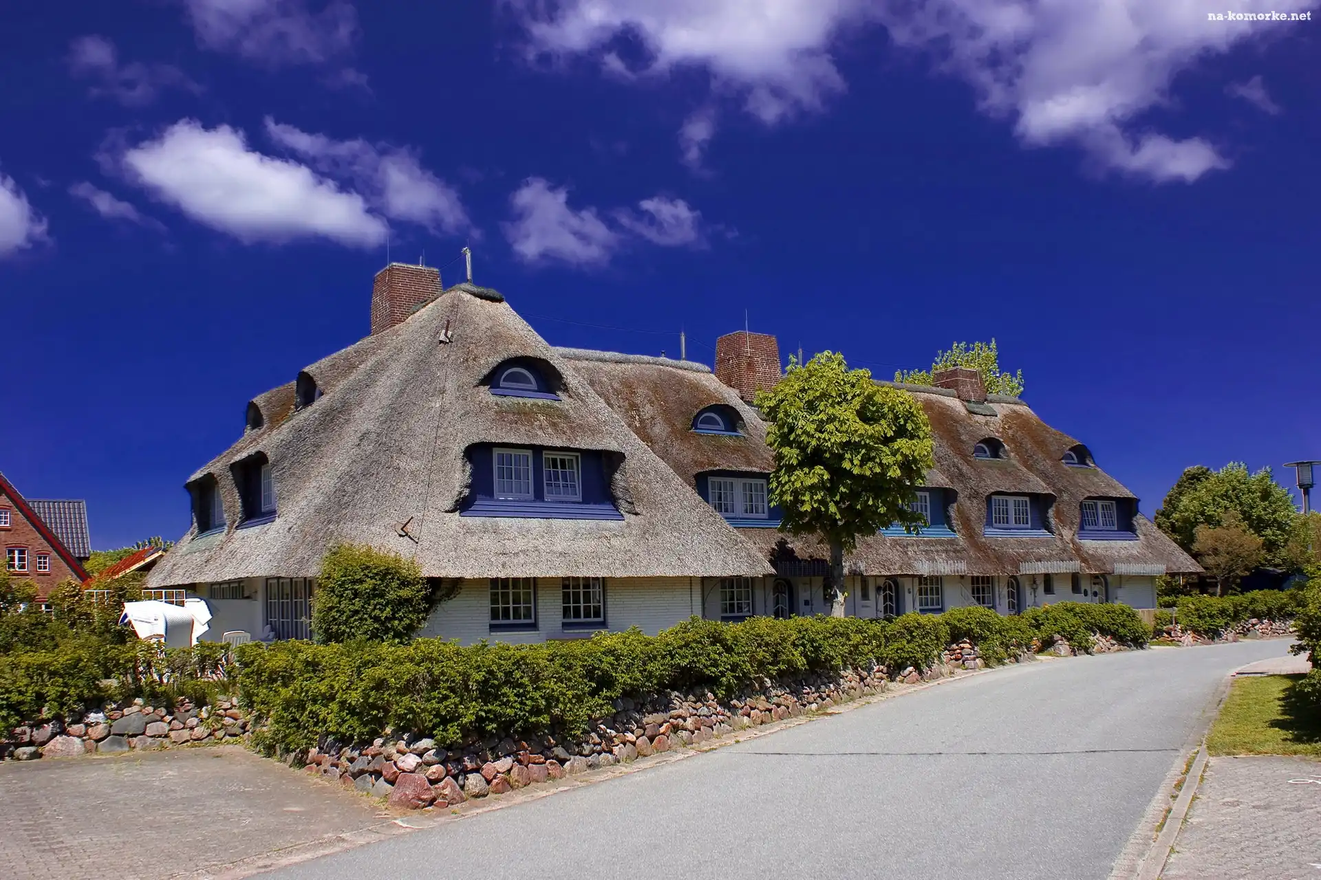 Dom, Ulica, Drzewo, Żywopłot na Komórkę