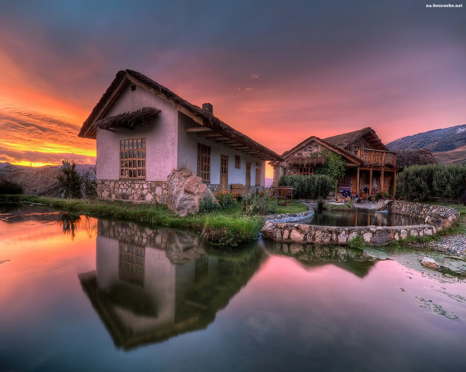 Dom, Słońca, Jezioro, Zachód na Komórkę