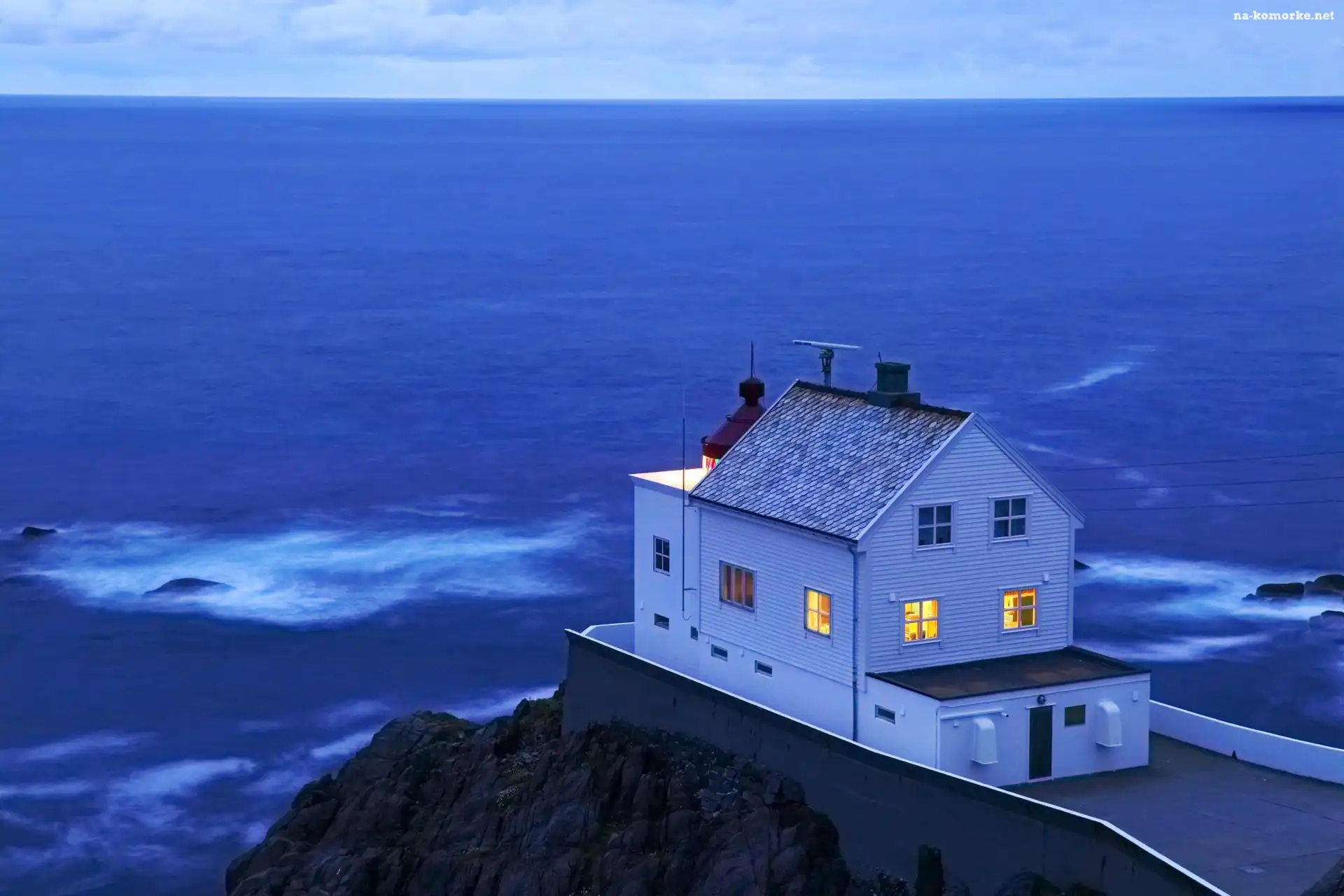 Dom, Norwegia, Latarnia Morska, Morze, Fale na Komórkę
