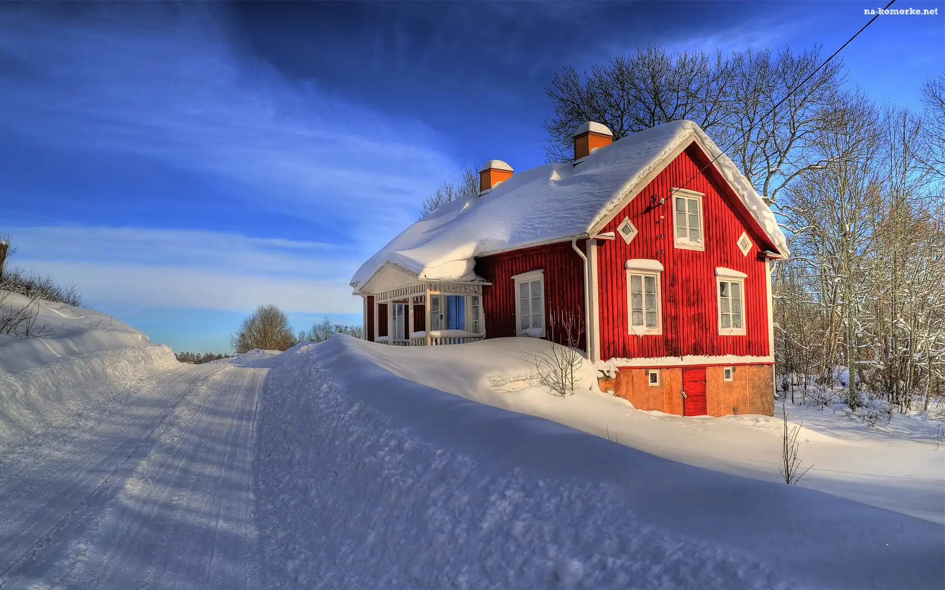 Dom, Droga, Niebo, Śnieg na Komórkę