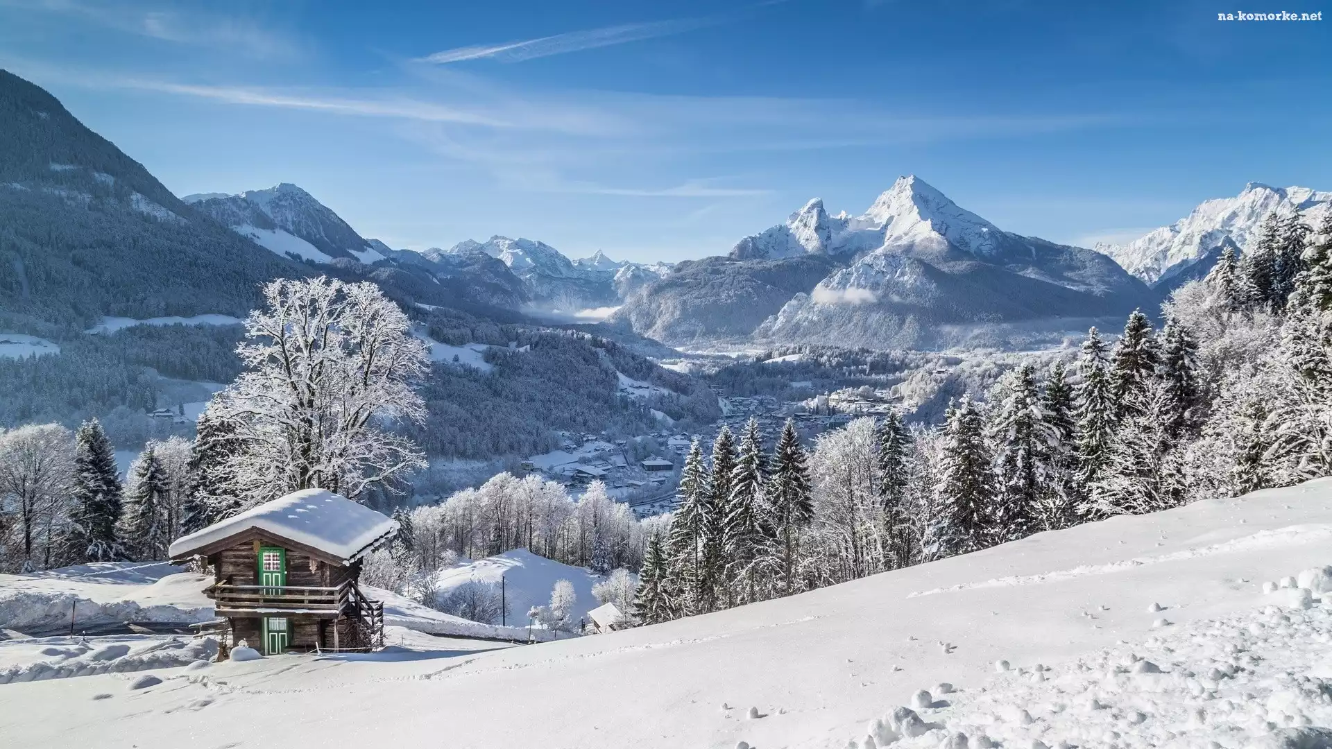 Niemcy, Dom, Śnieg, Berchtesgaden, Zima, Góry, Drzewa na Komórkę