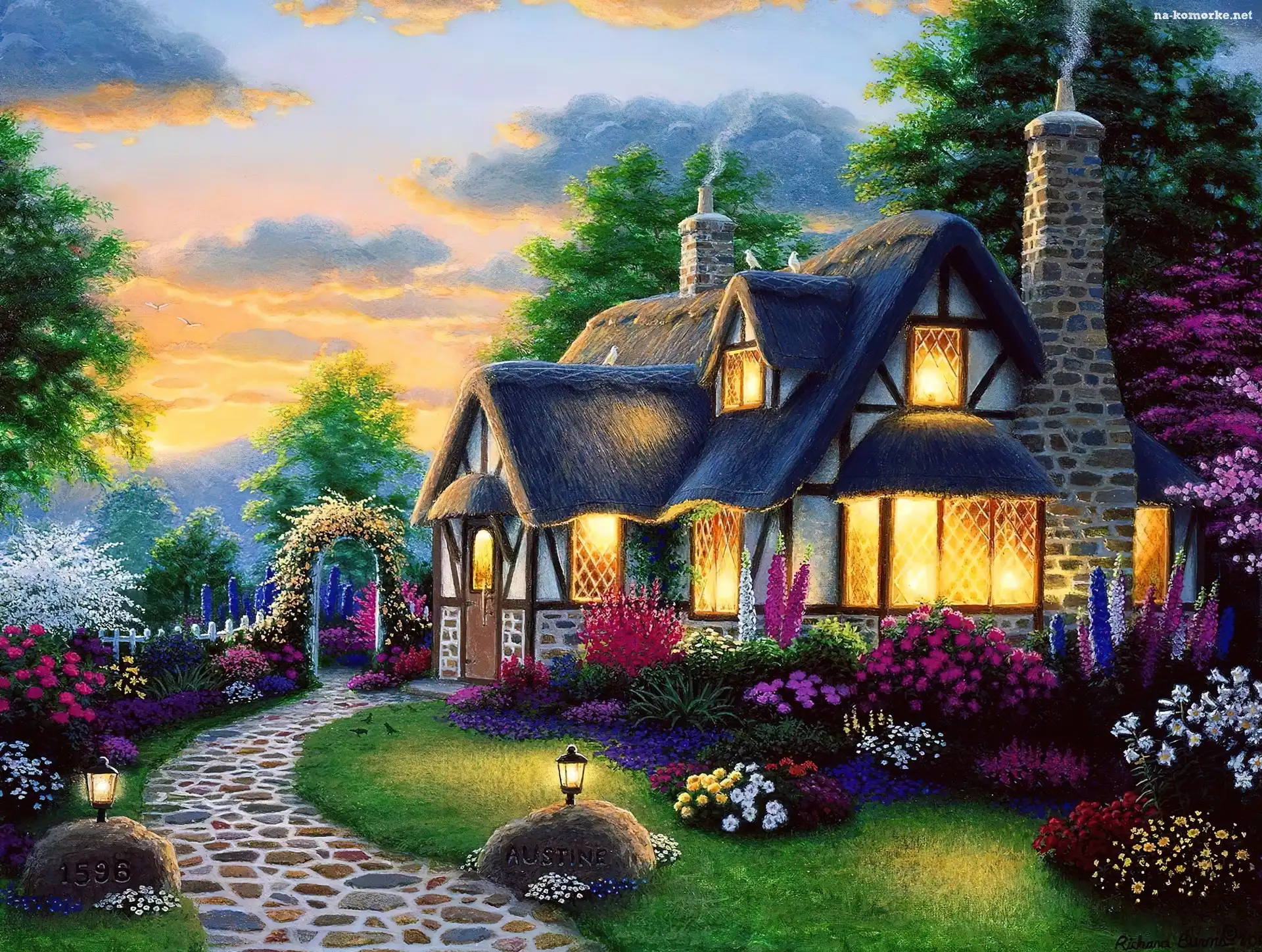 Dom, Alejka, Ogród, Kwiaty na Komórkę