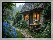 Ogród, Deszcz, Kamienny, Dom na Komórkę