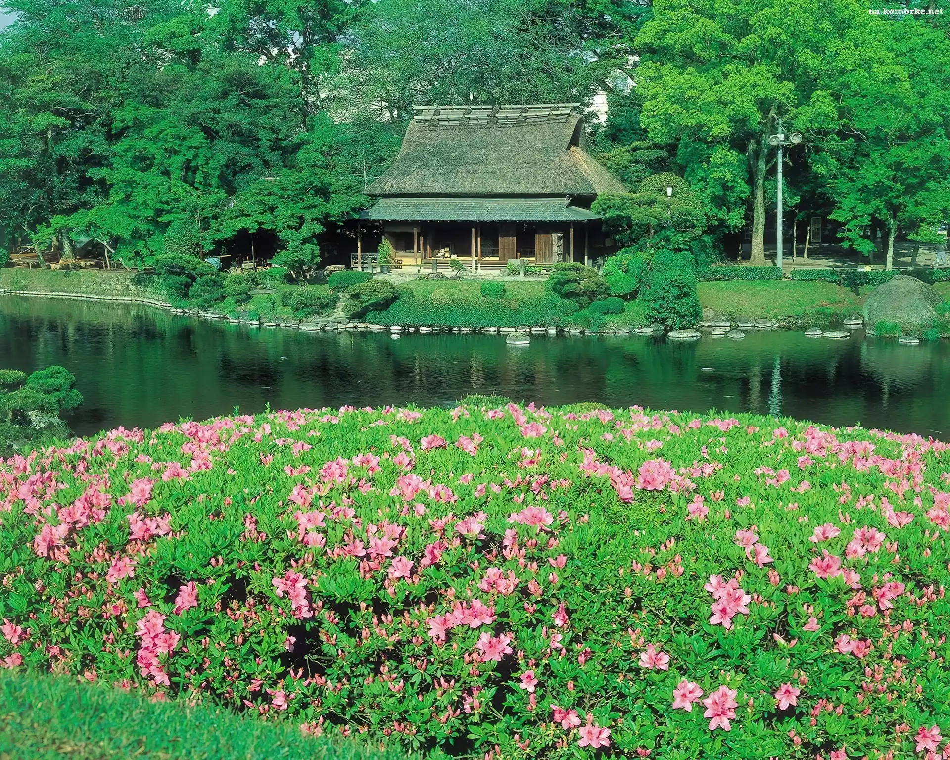 Dom, Kwiatki, Ogród, Rzeka na Komórkę