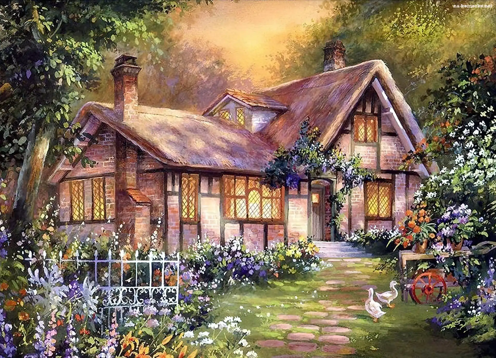 Dom, Kwiaty, Ogród, Podwórko na Komórkę