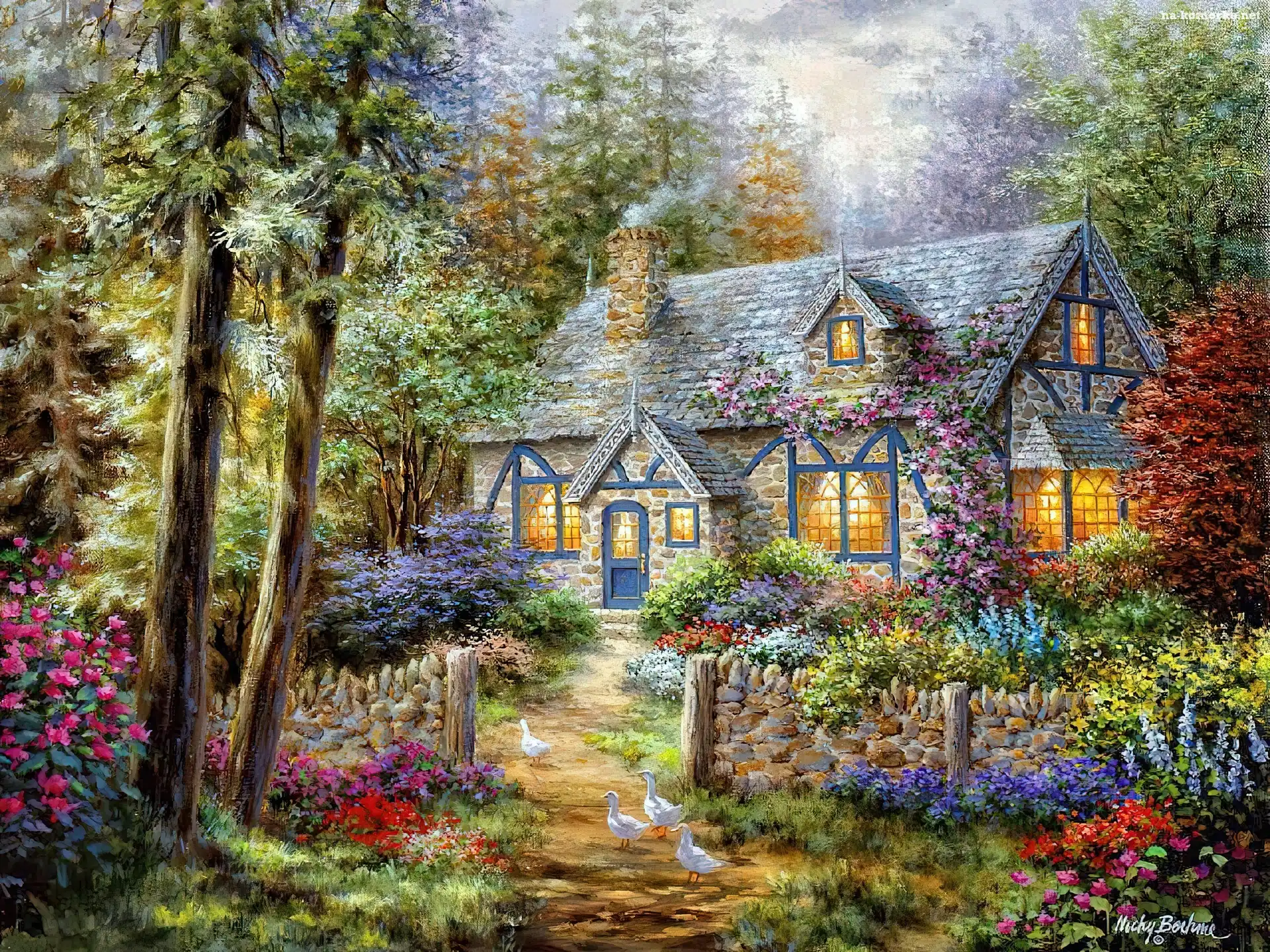 Dom, Obraz, Ogród, Kwiaty na Komórkę