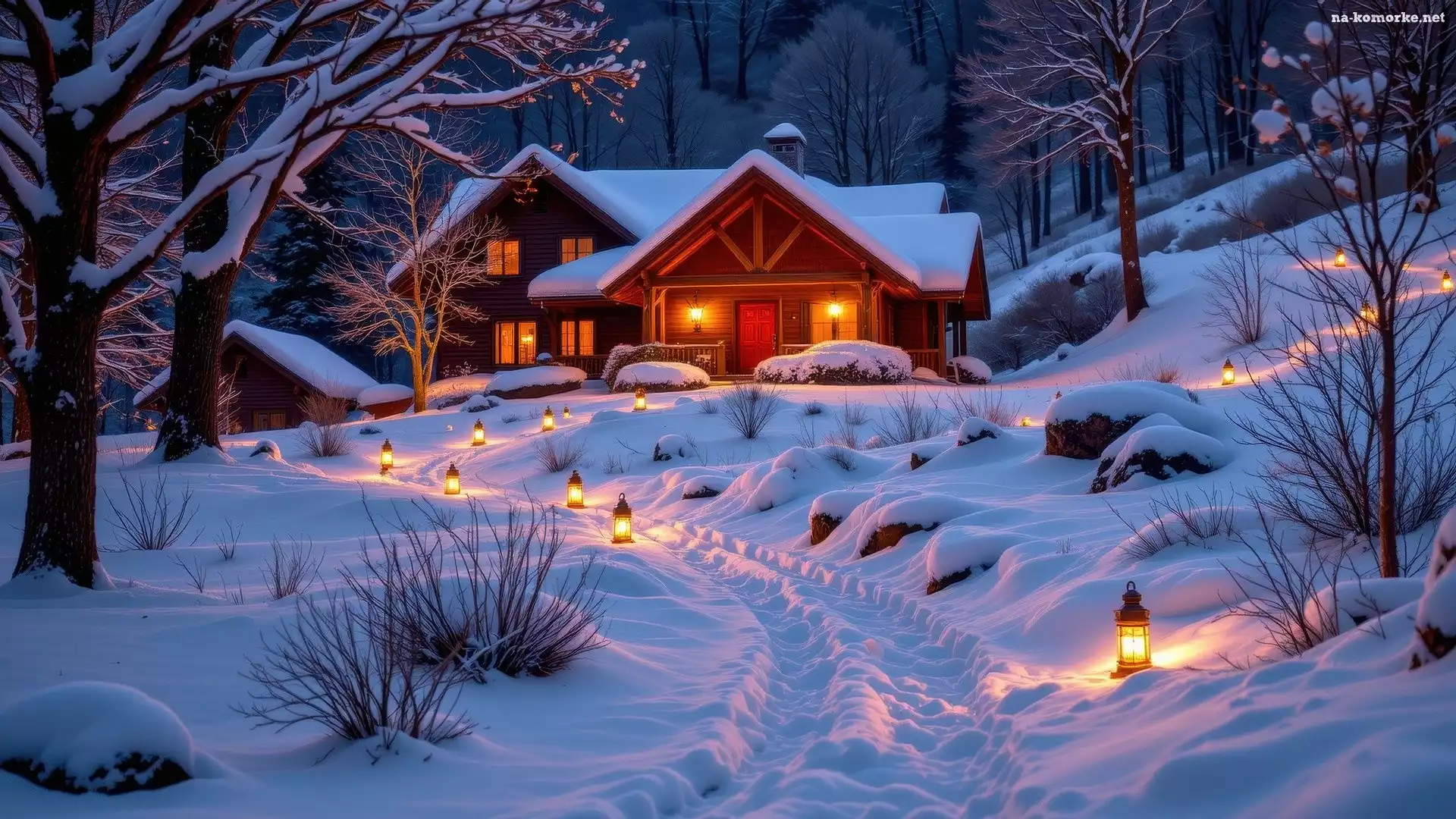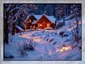 Zima, Dom, Oświetlenie, Las, Lampiony na Komórkę