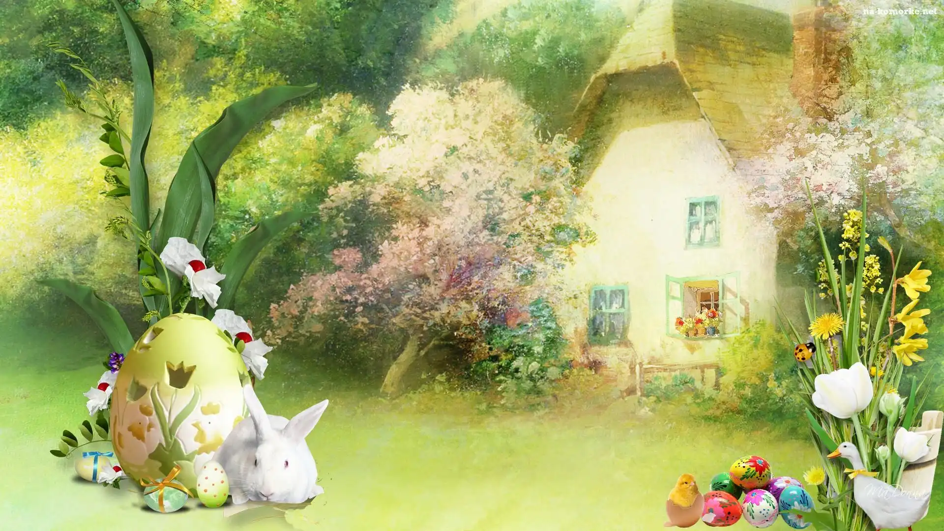 Pisanki, Dom, Wielkanoc, Grafika komputerowa, Królik, Kwiaty na Komórkę