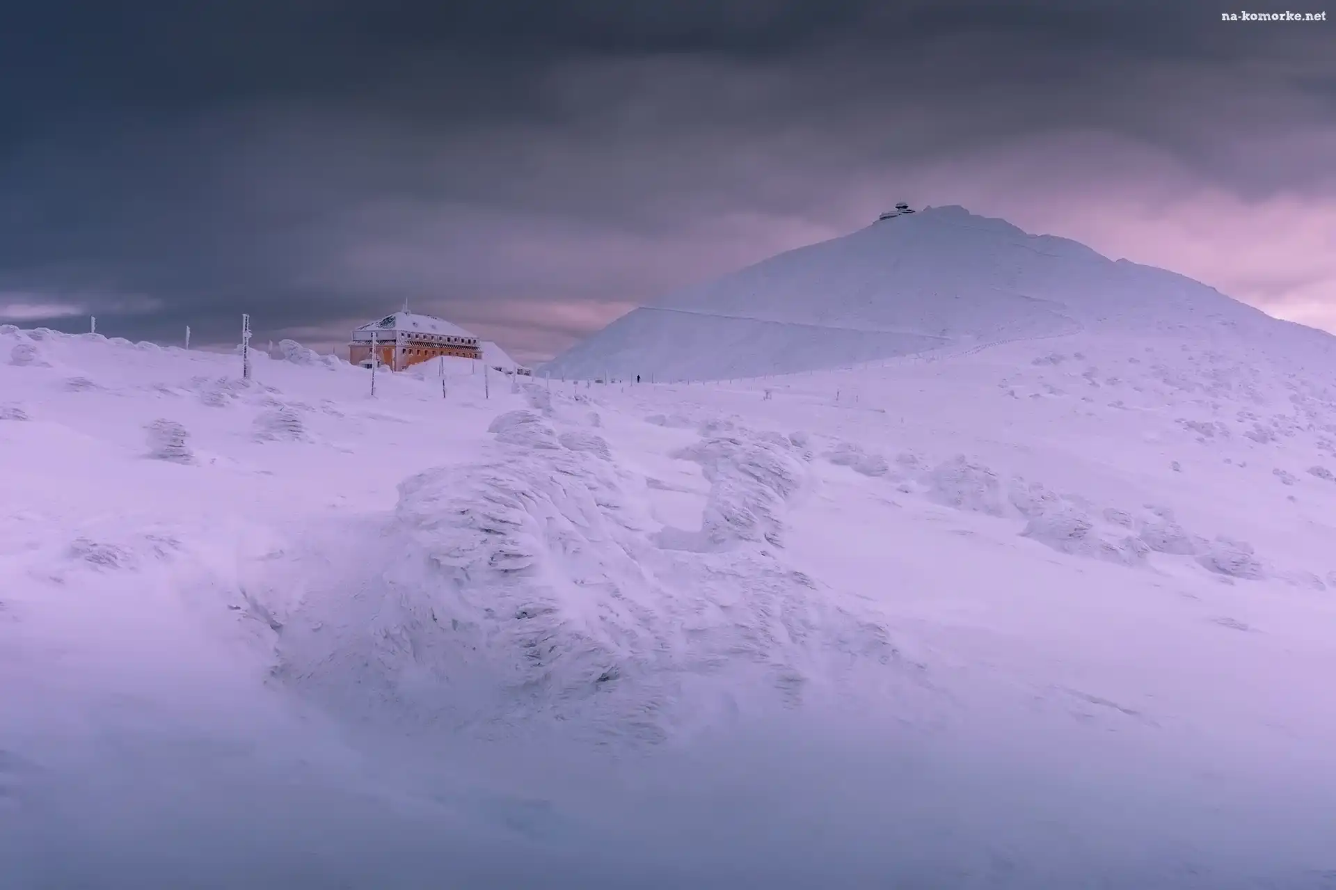 Zima, Schronisko, Polska, Góry Sudety, Obserwatorium, Szczyt Śnieżka, Dom na Komórkę