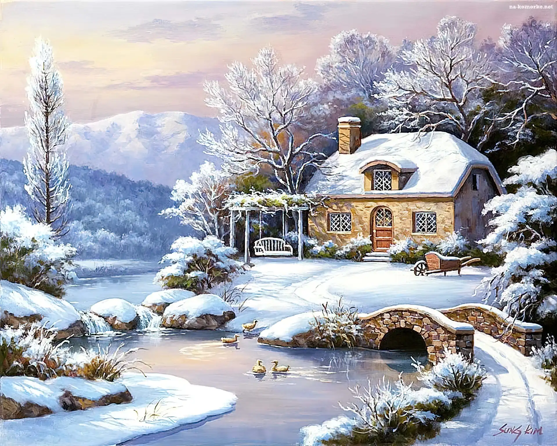 Dom, Zima, Rzeka, Góry na Komórkę