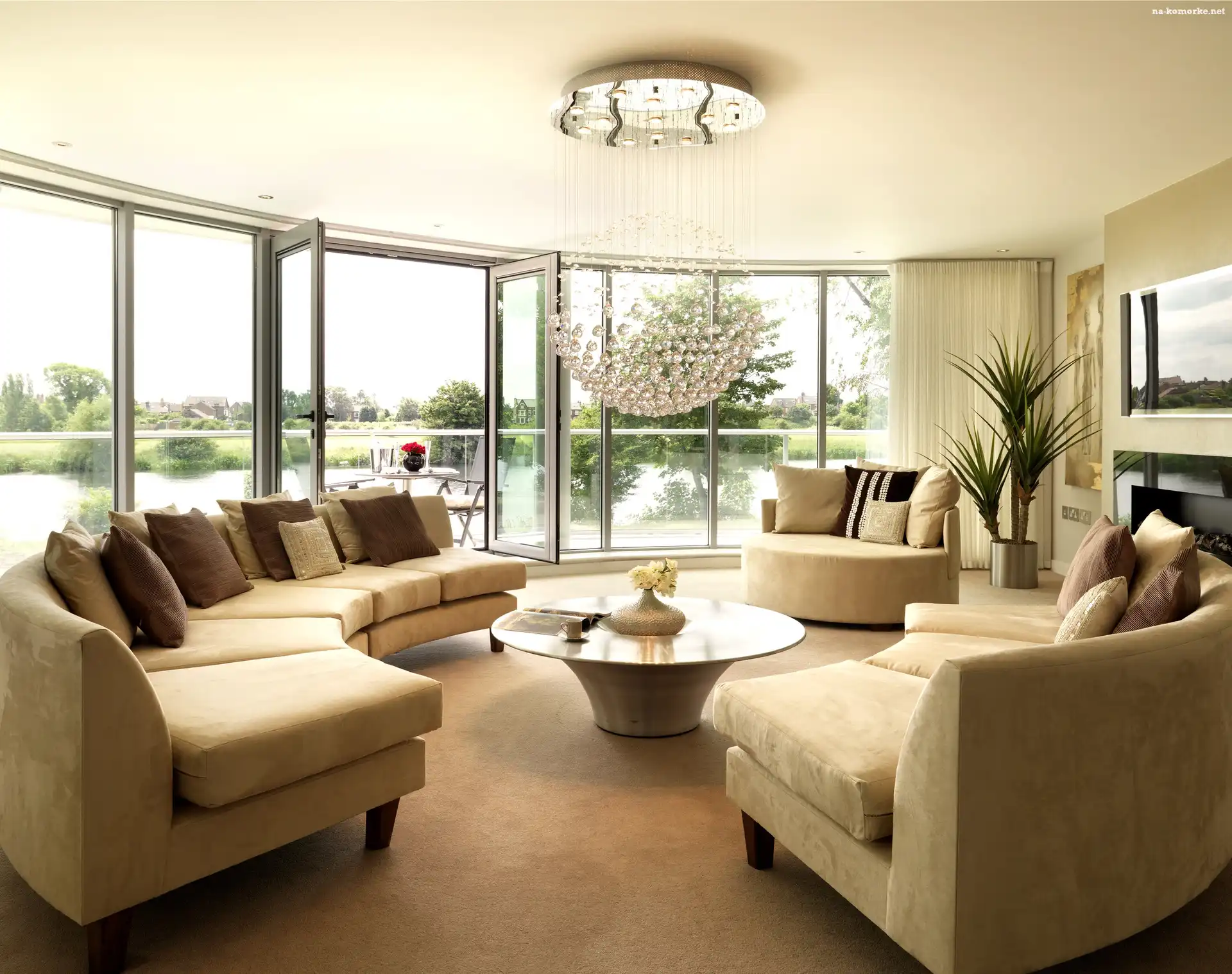 Dom, Krajobraz, Salon, Okno na Komórkę