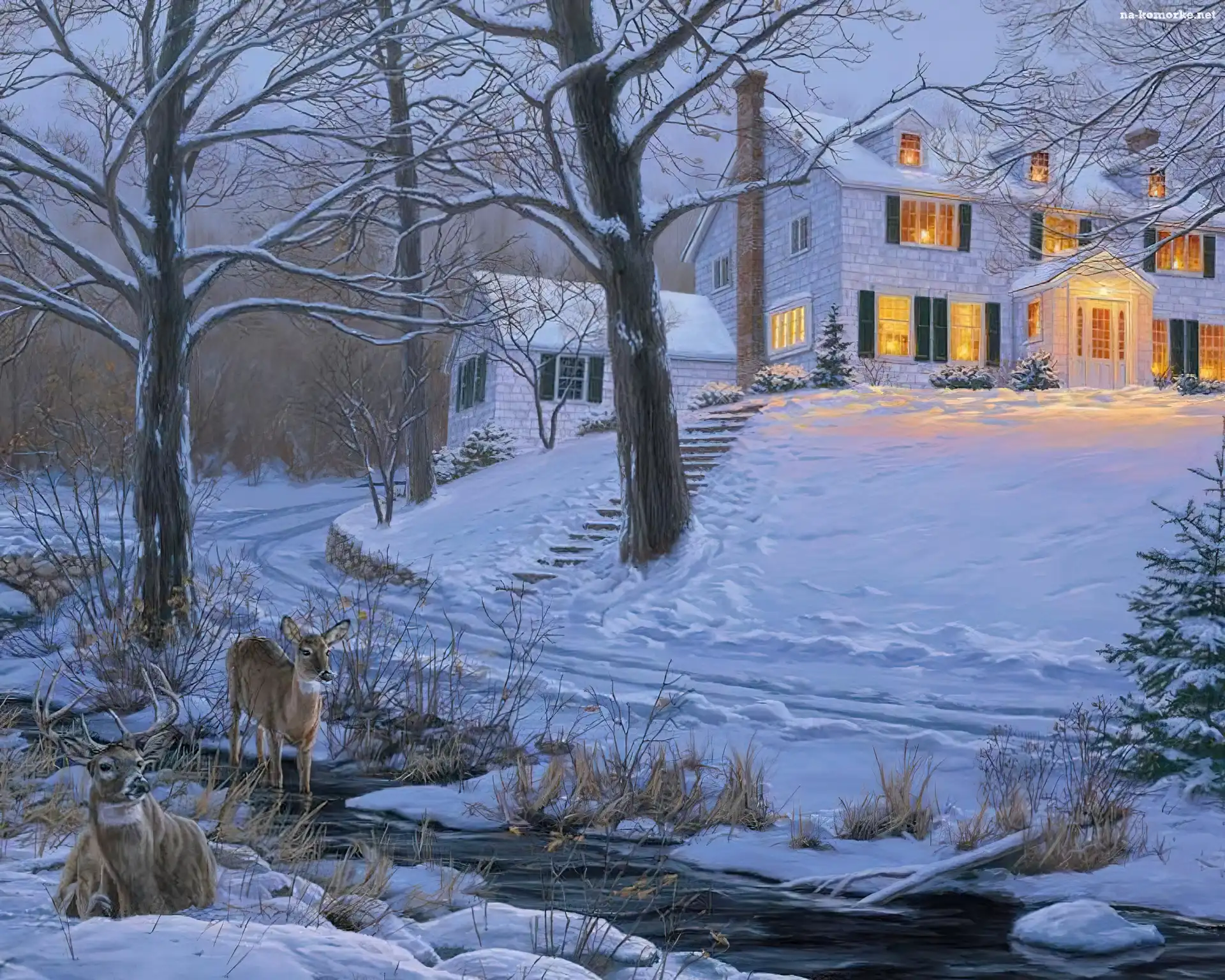 Dom, Zima, Sarna, Jeleń na Komórkę