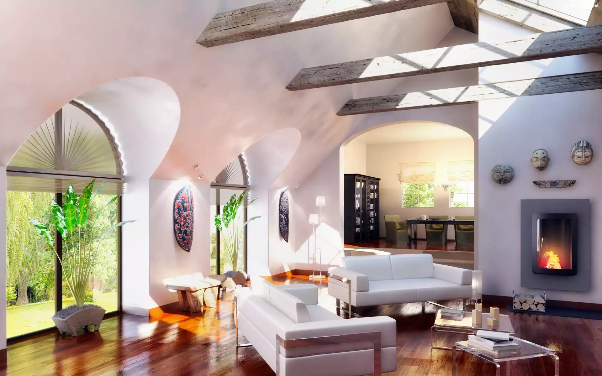 Dom, Kominek , Wnętrze, Stylowe Poddasze na Komórkę