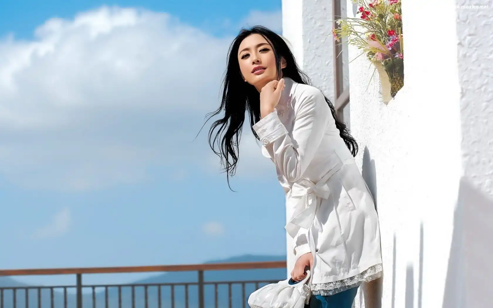 Dom, Biała, Brunetka, Taras, Sukienka, Okno na Komórkę