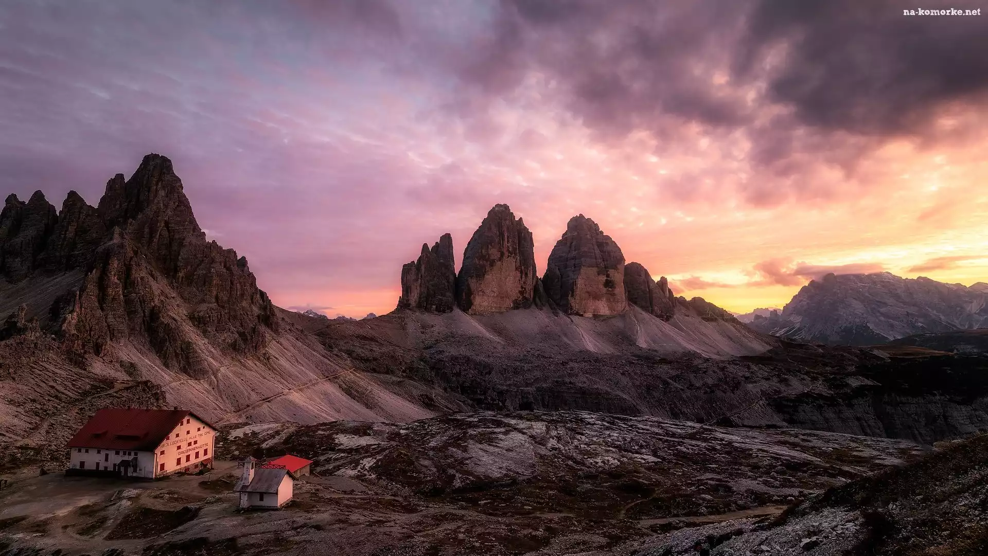 Dolomity, Kaplica, Schronisko, Góry, Auronzo, Włochy, Dom, Tre Cime di Lavaredo na Komórkę