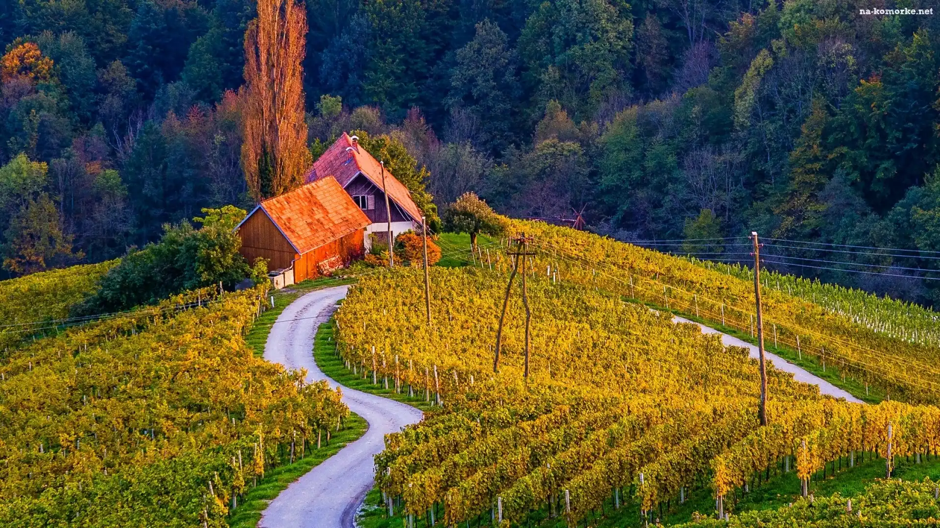 Dom, Jesień, Pole, Winnica, Las na Komórkę
