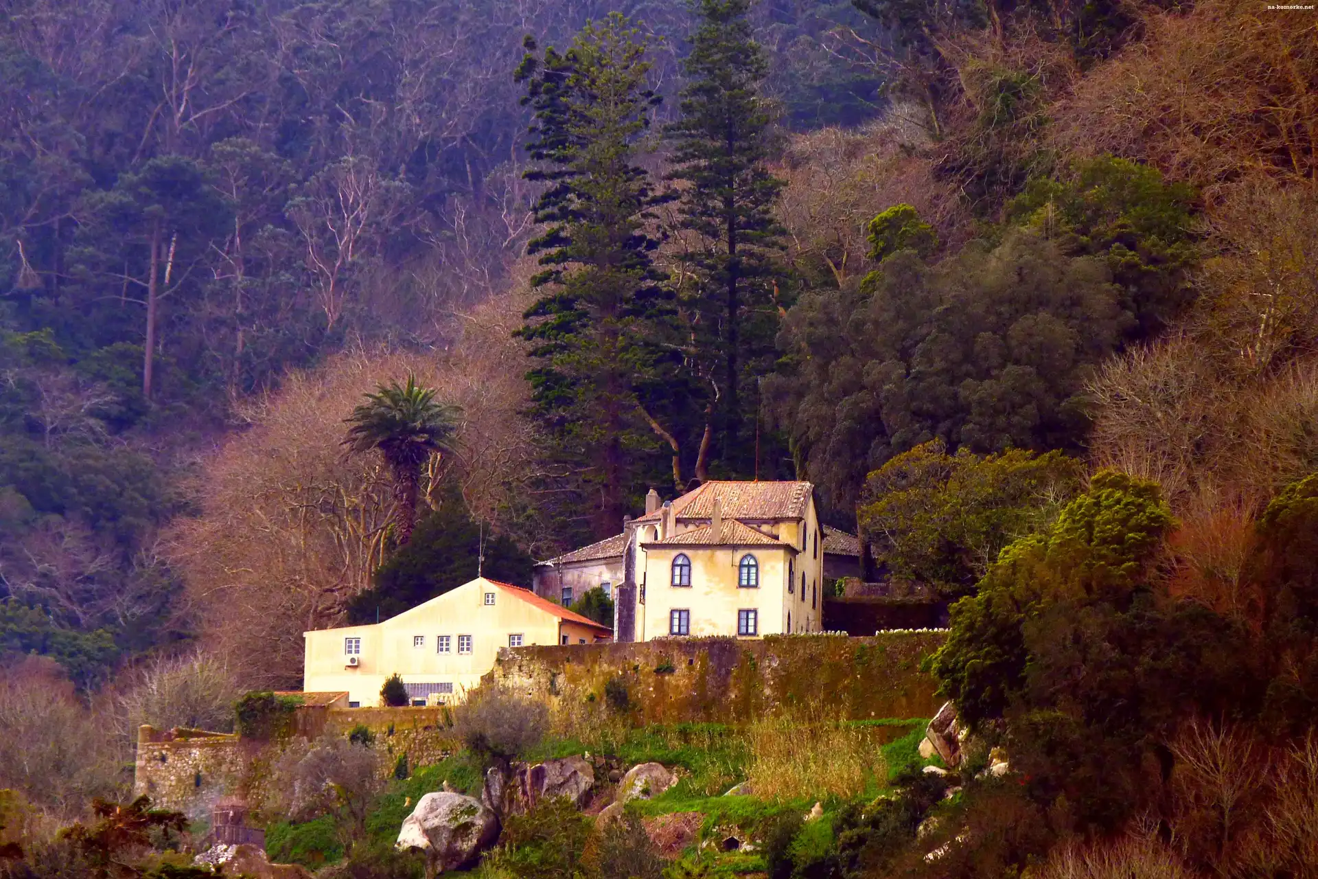 Dom, Jesień, Wzgórza, Drzewa na Komórkę