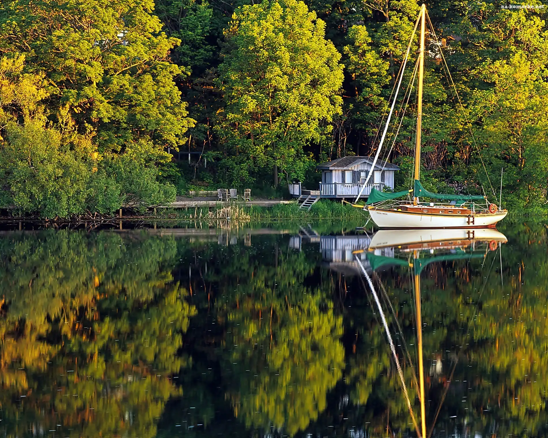 Żaglówka, Las, Jezioro, Domek, Letniskowy na Komórkę