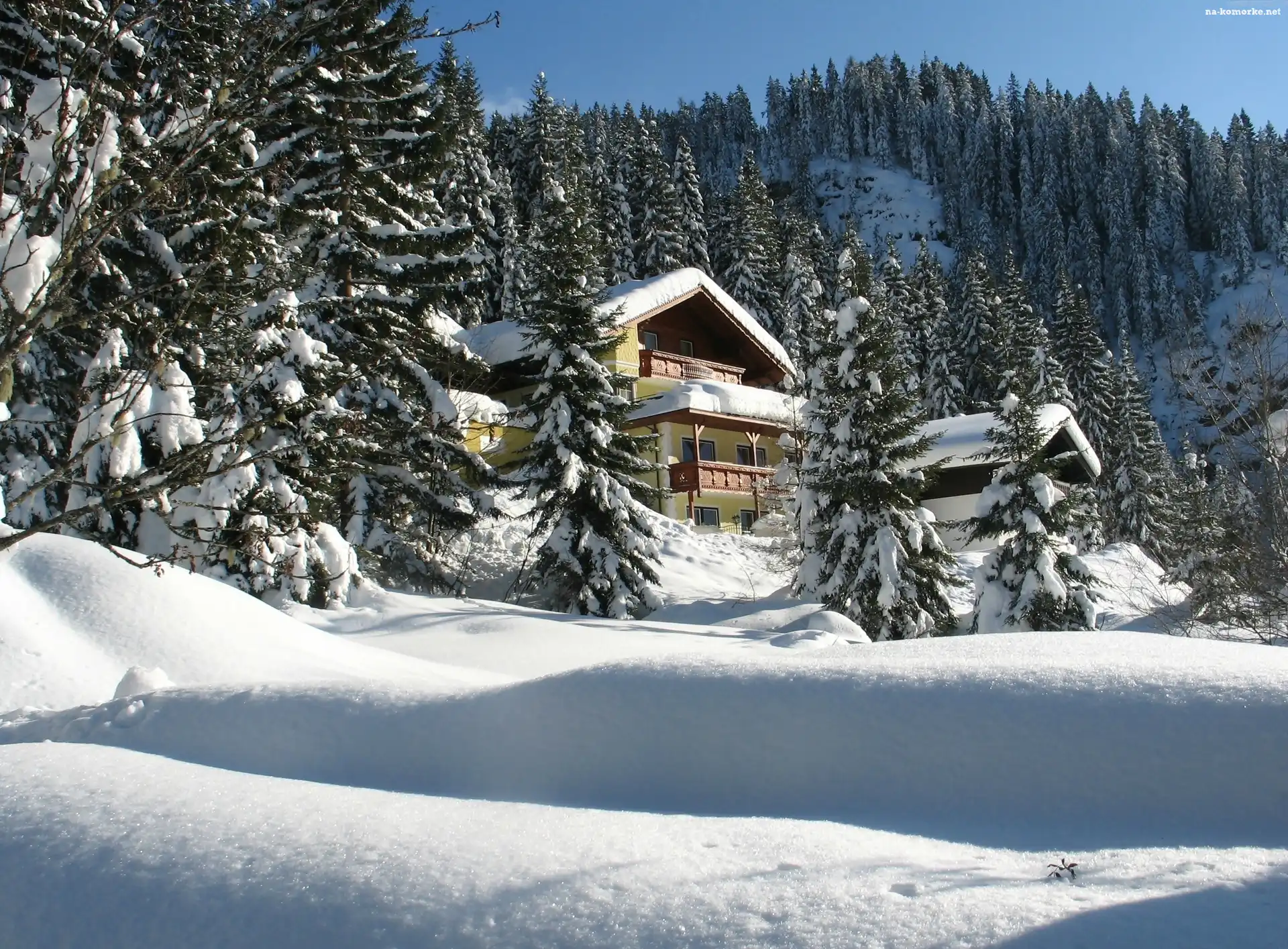 Domek, Zaspy, Ośnieżone, Choinki na Komórkę