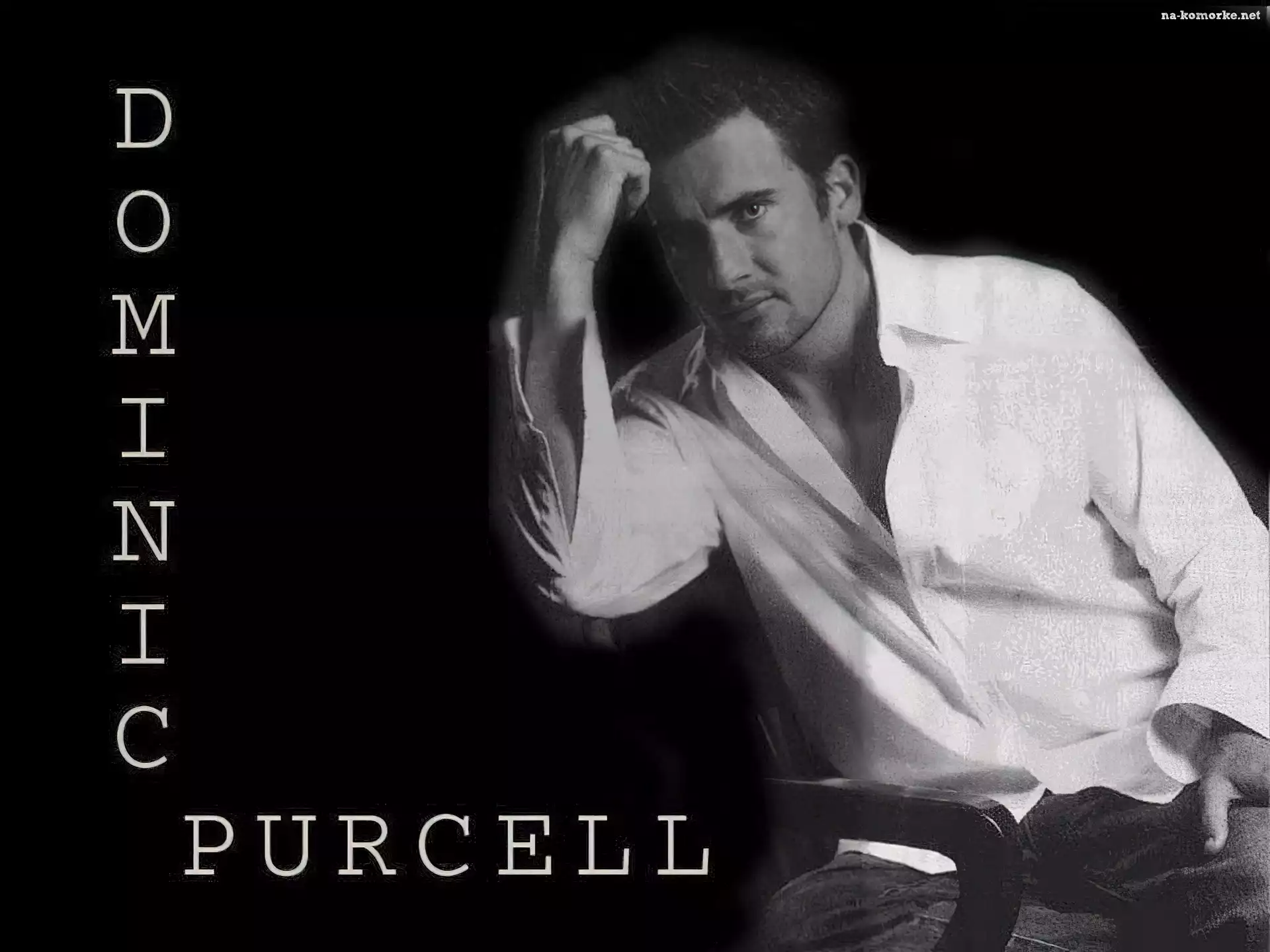 Dominic Purcell, biała koszula, jeansy na Komórkę