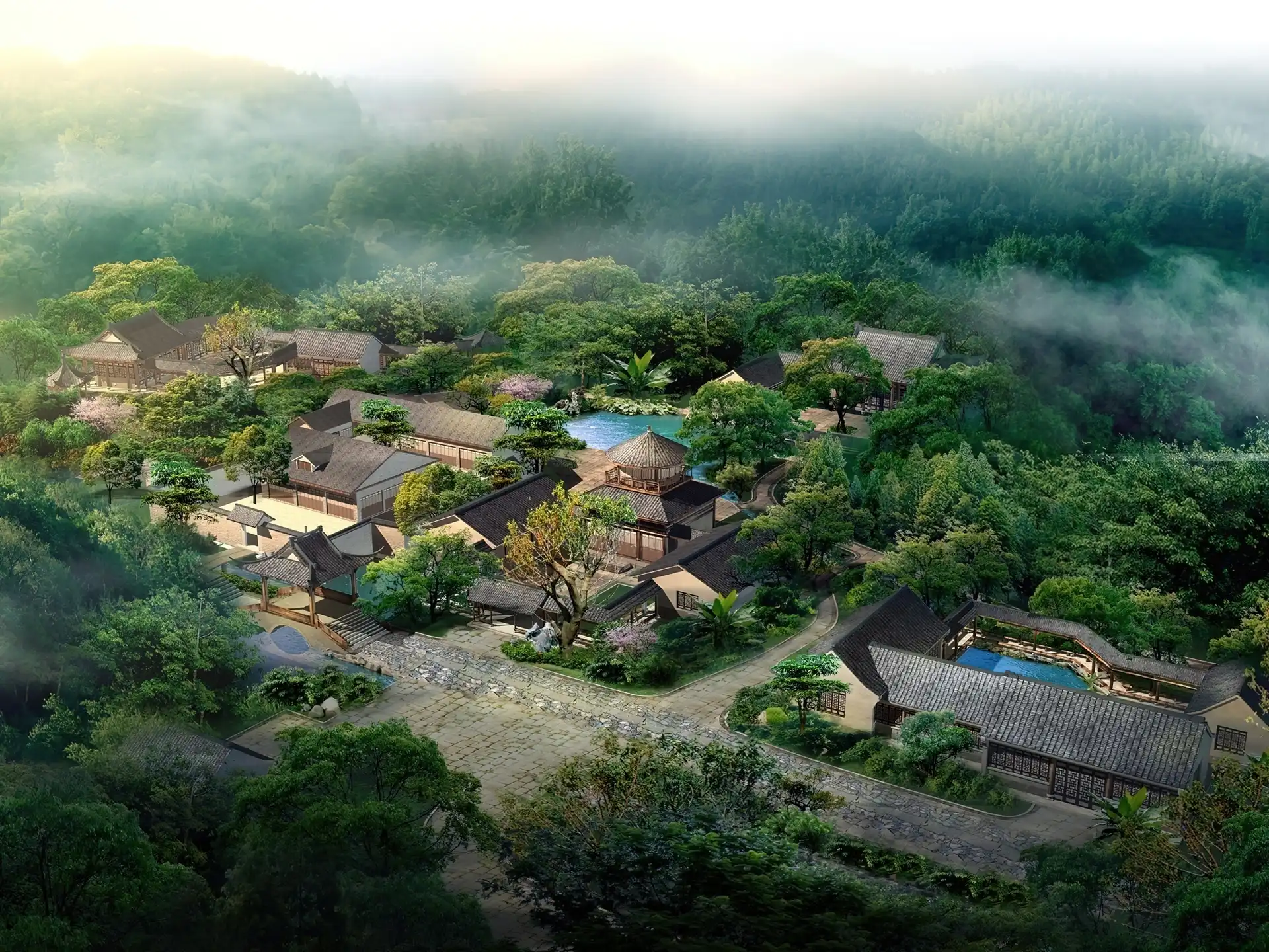 Domki, Ogród, Japoński, Drzewa, Mgła na Komórkę