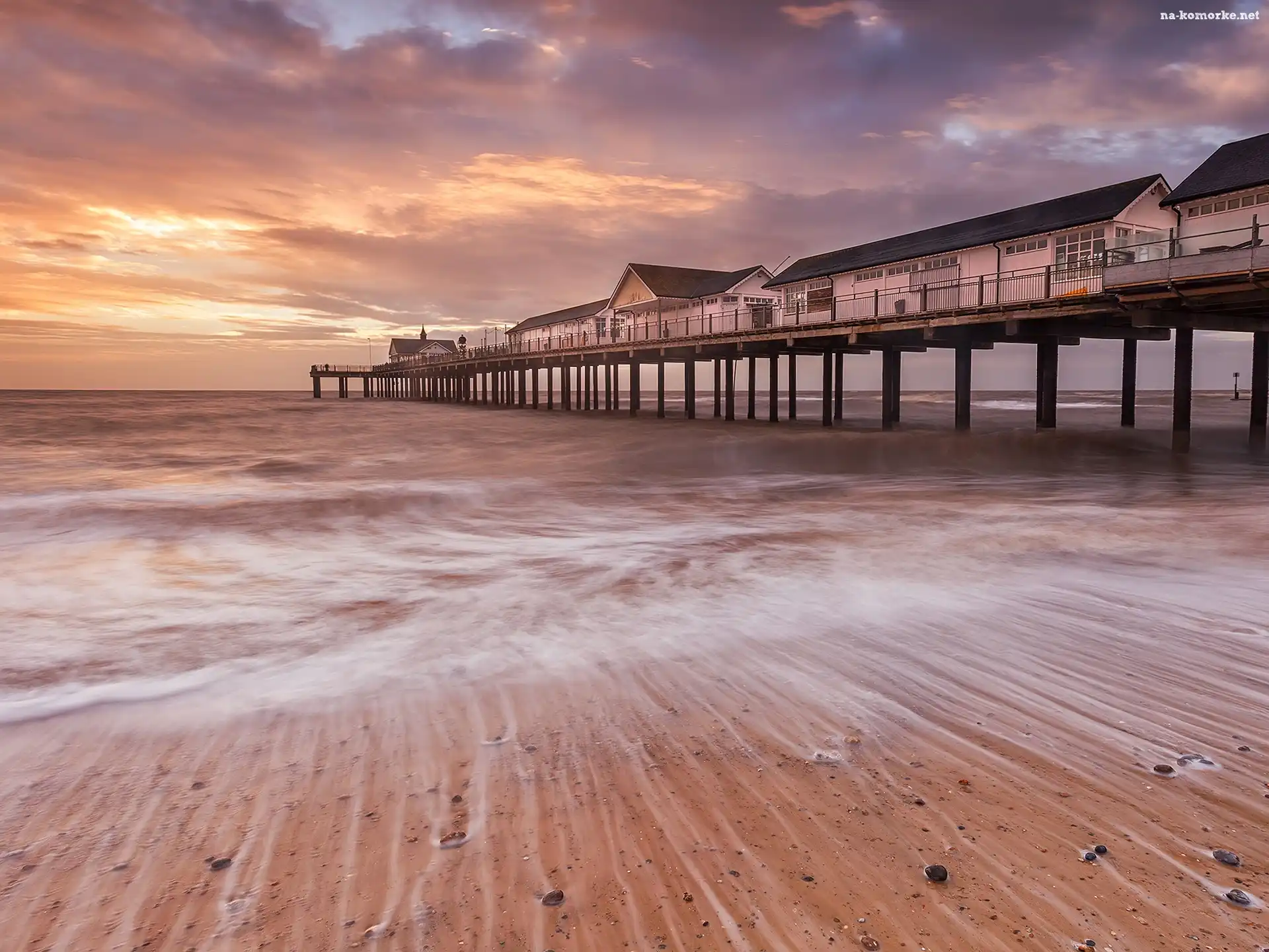 Domki, Morze, Wschód, Słońca, Molo na Komórkę