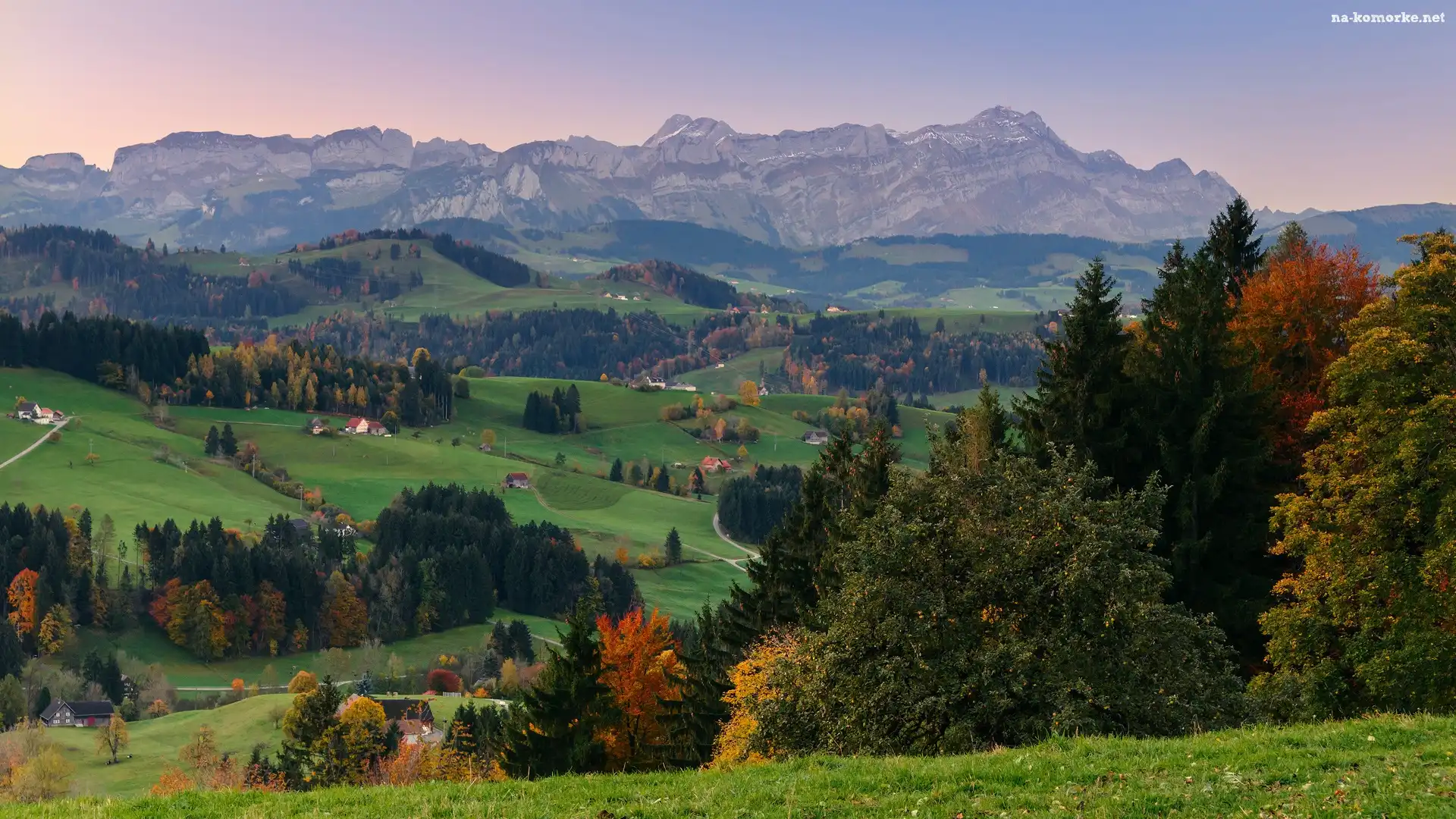 Domy, Lasy, Góry, Panorama, Łąki, Jesień na Komórkę