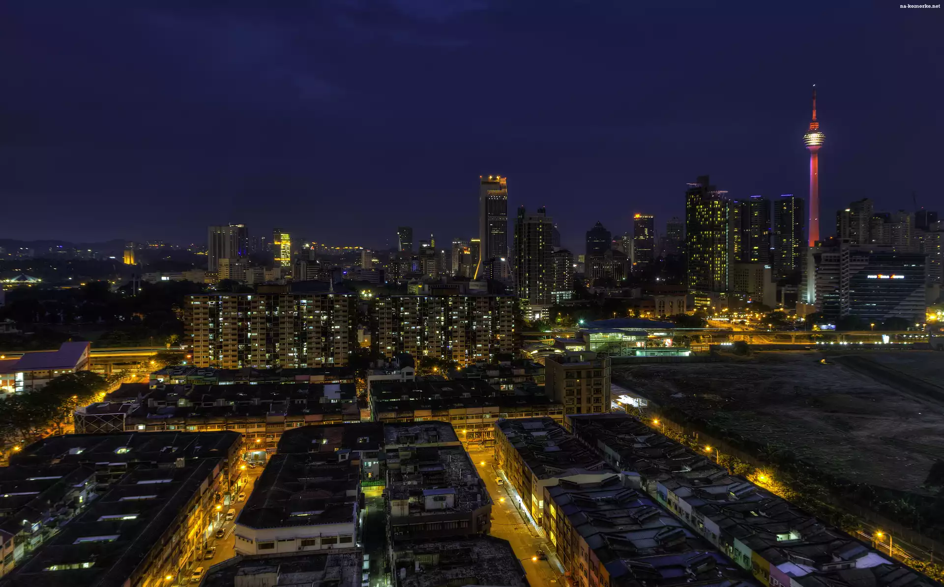 Domy, Kuala Lumpur, Malezja, Azja , Noc na Komórkę
