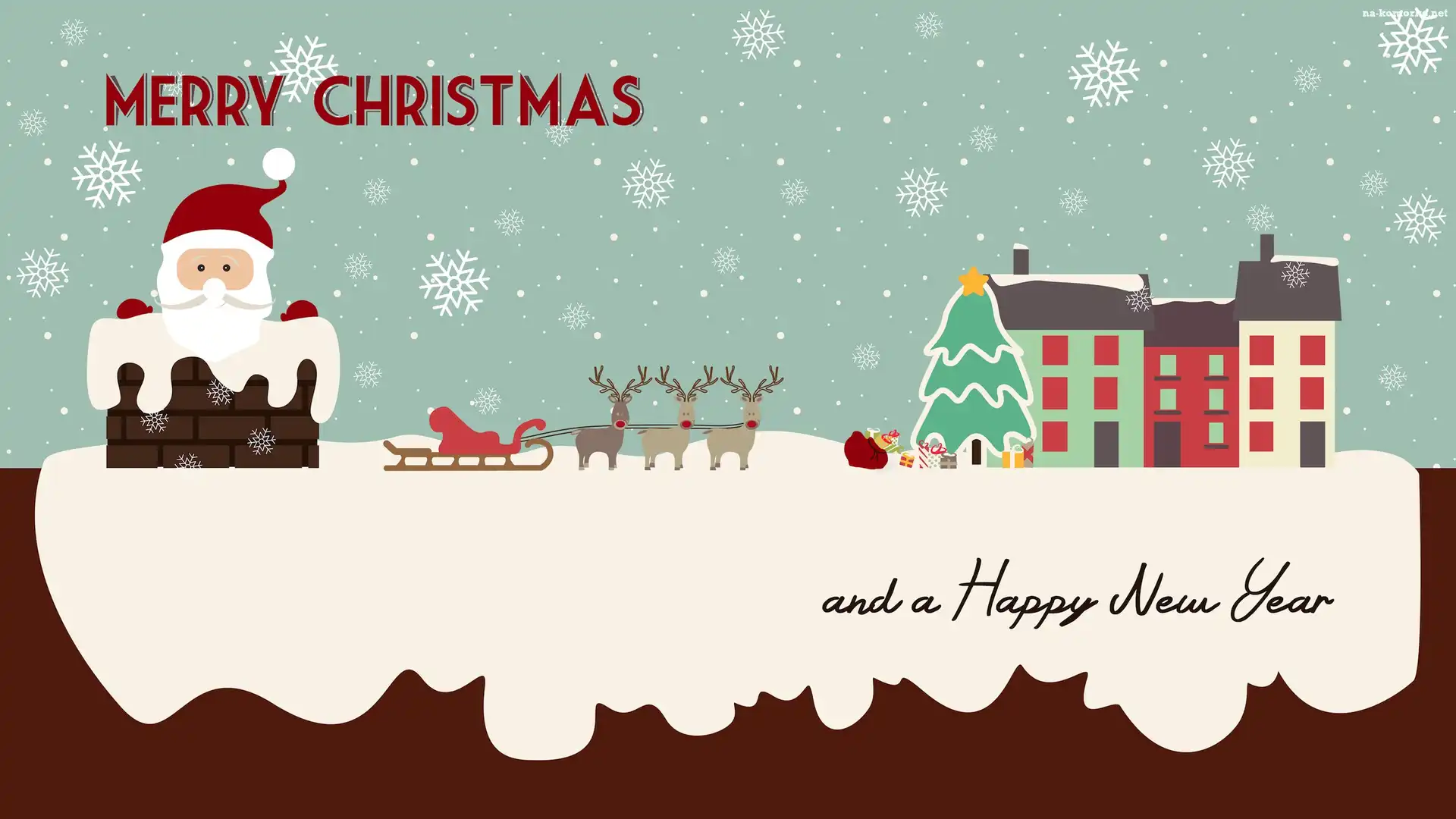 Domy, Komin, Mikołaj, Życzenia, Choinka, Zaprzęg na Komórkę