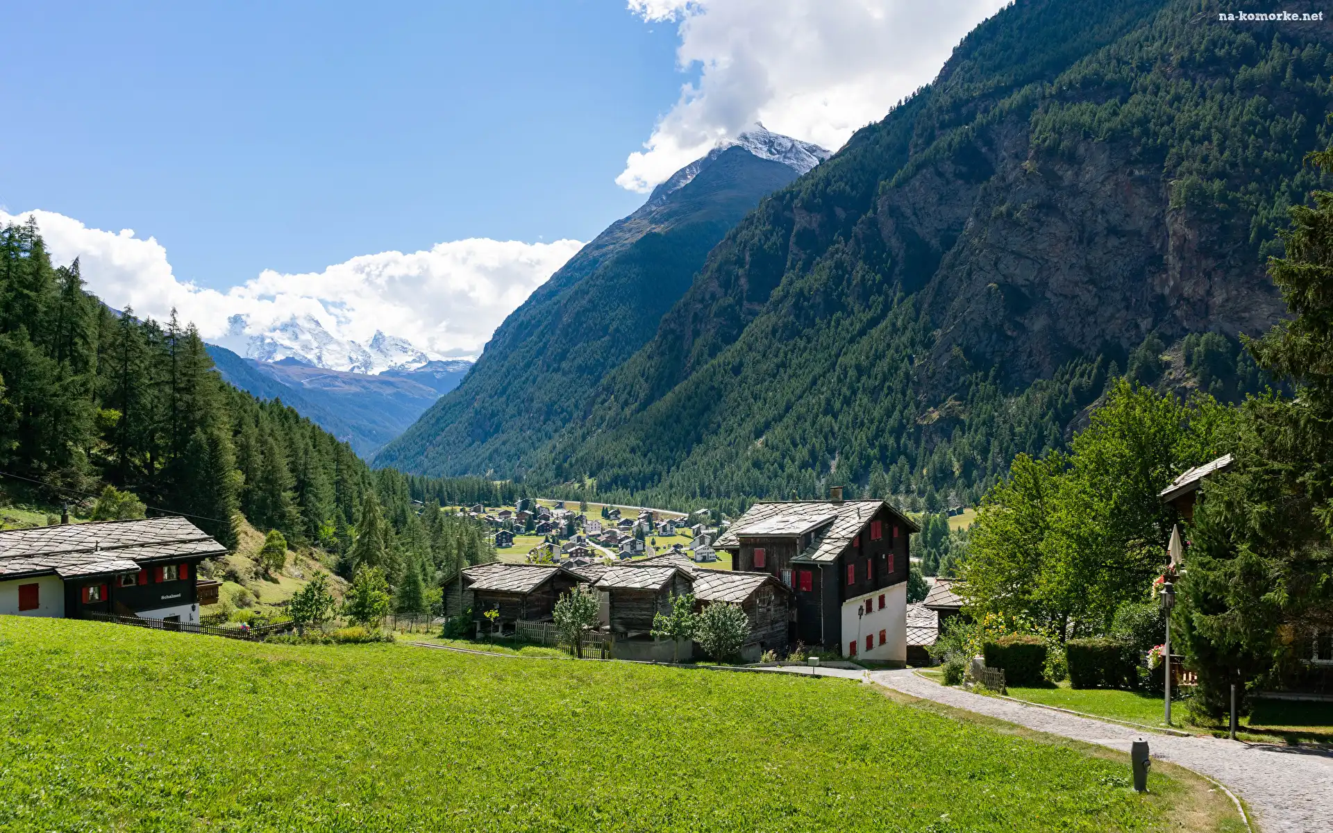 Dolina, Domy, Droga, Góry, Las na Komórkę