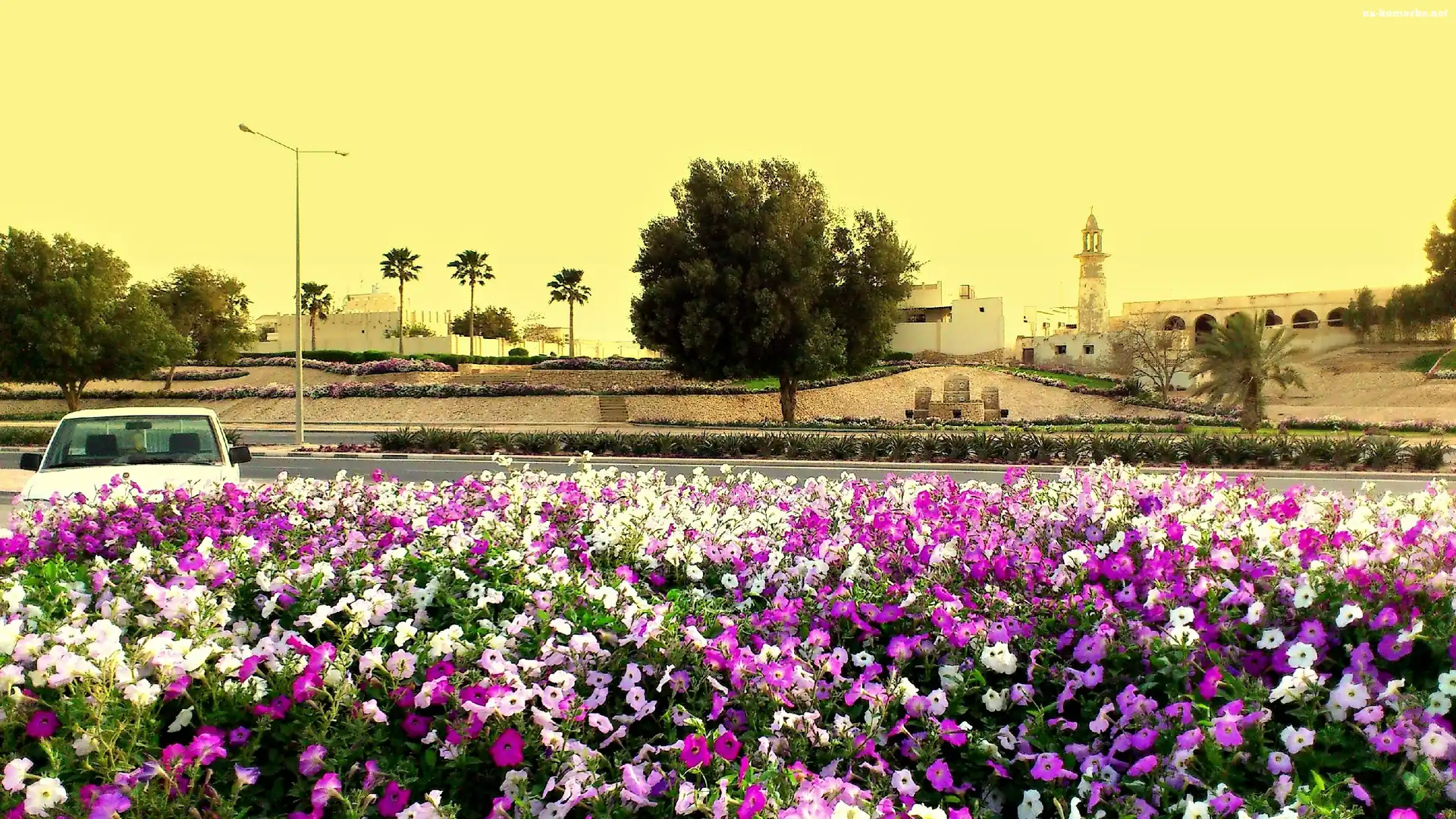 Drzewa, Domy, Al-Doha, Bratki, Meczet, Skwer na Komórkę