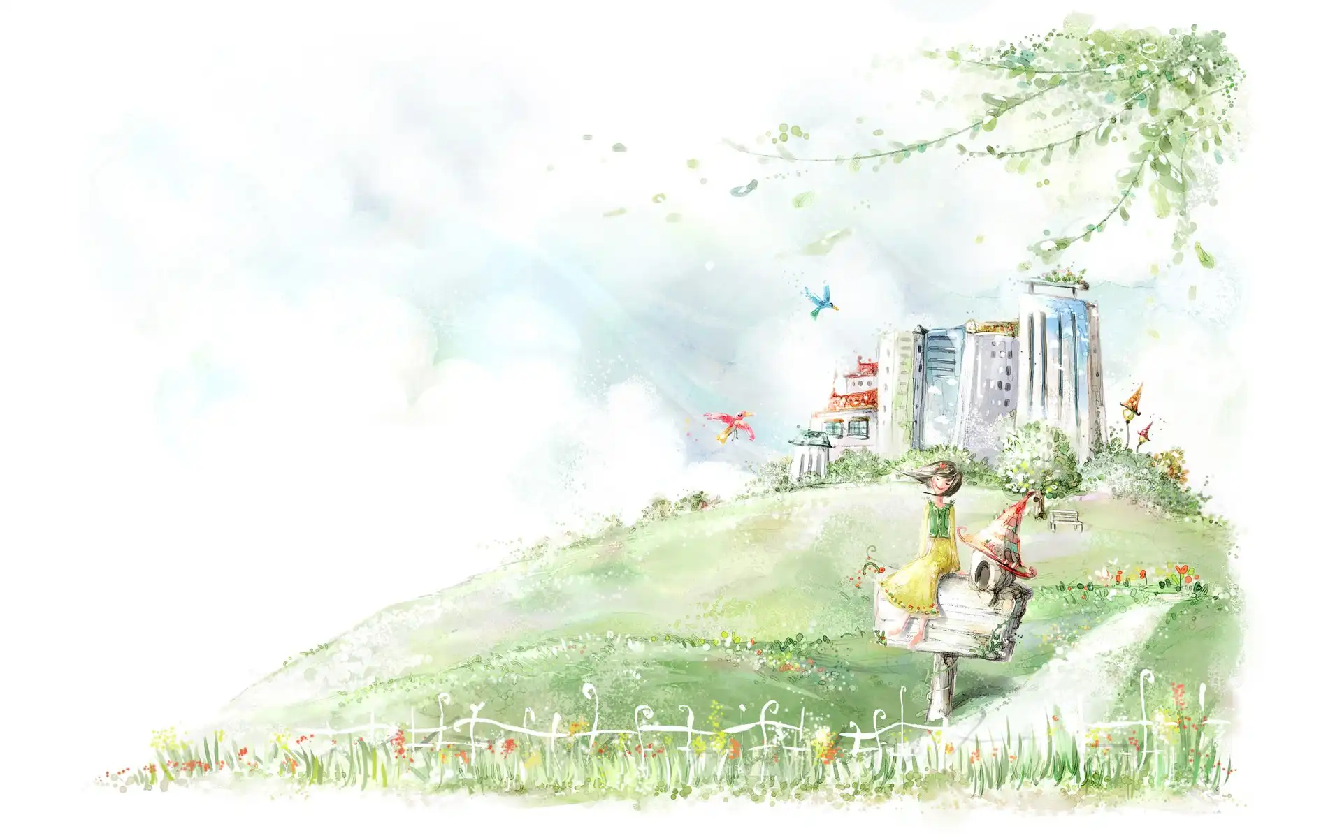 Domy, Kwiaty, Dziewczynka, Łąka na Komórkę
