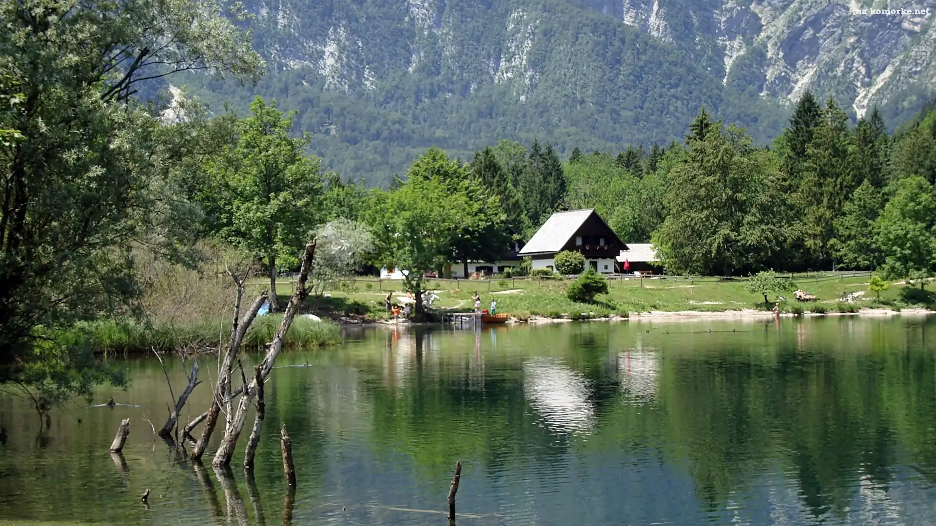 Domy, Góry, Lasy, Jezioro, Bohinj na Komórkę