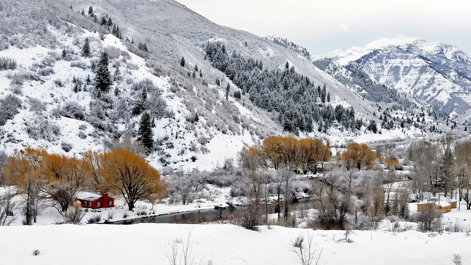 Domy, Zima, Góry, Lasy, Rzeka na Komórkę
