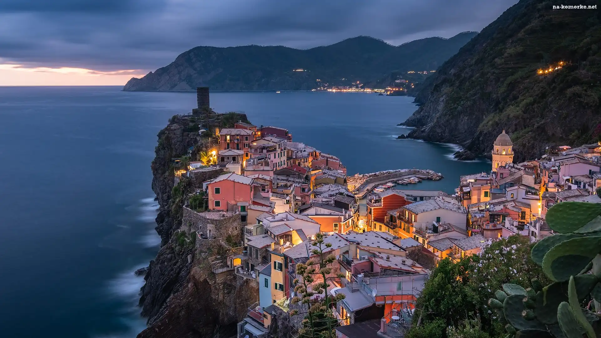 Włochy, Domy, Chmury, Vernazza, Cinque Terre, Wybrzeże, Morze na Komórkę