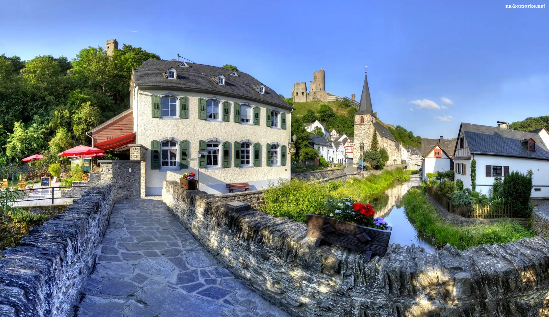 Niemcy, Domy, Kamienny Mostek, Ruiny Zamku, Wzgórza na Komórkę