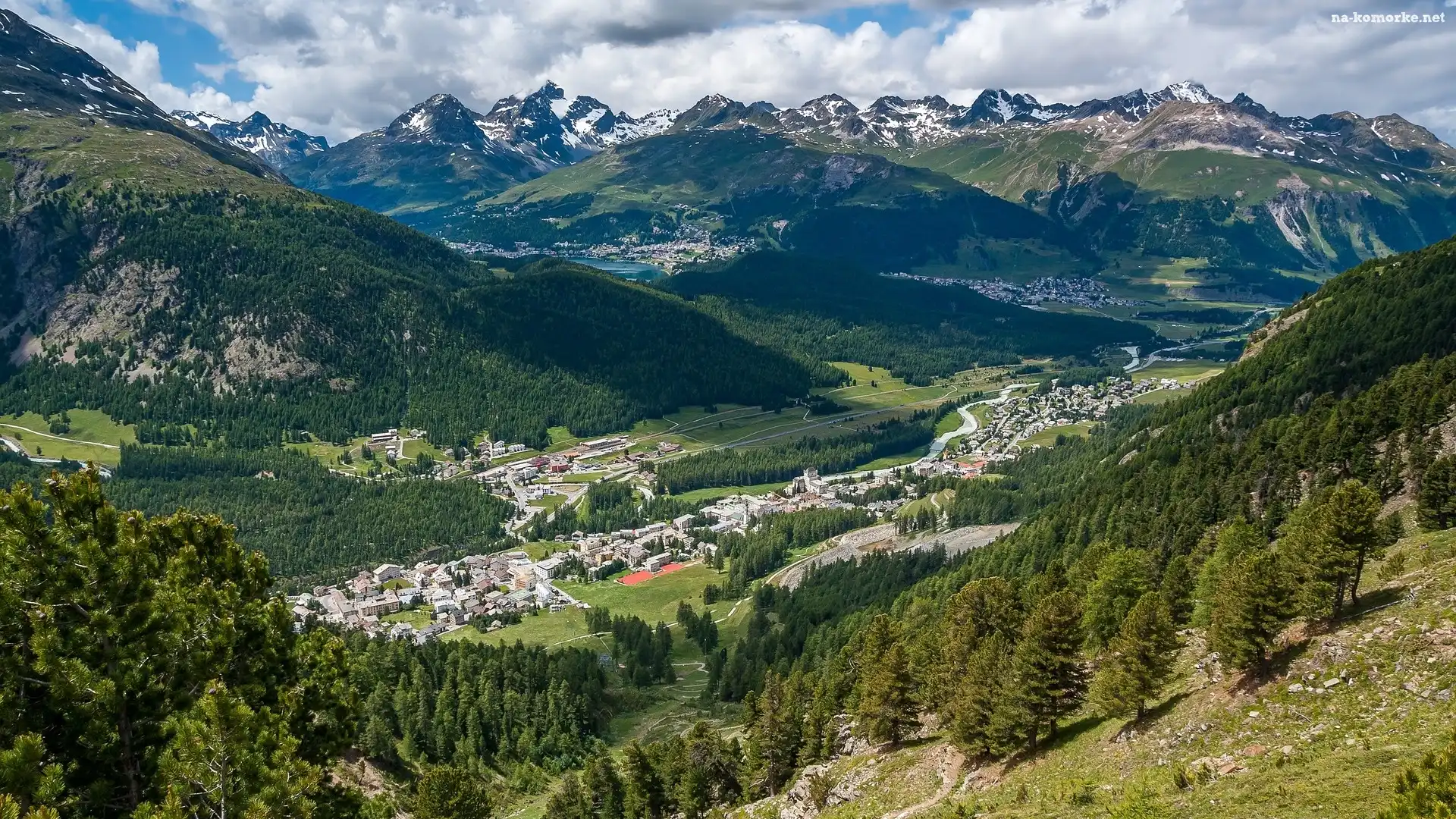 Domy, Dolina, Góry, Lasy, Osada, Drzewa na Komórkę