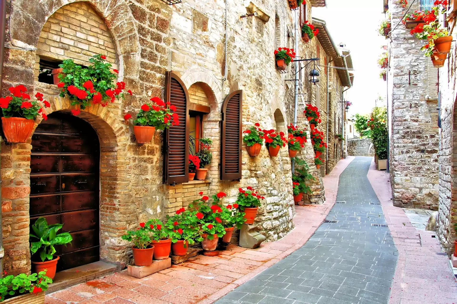 Domy, Włochy, Ulica, Kwiaty na Komórkę