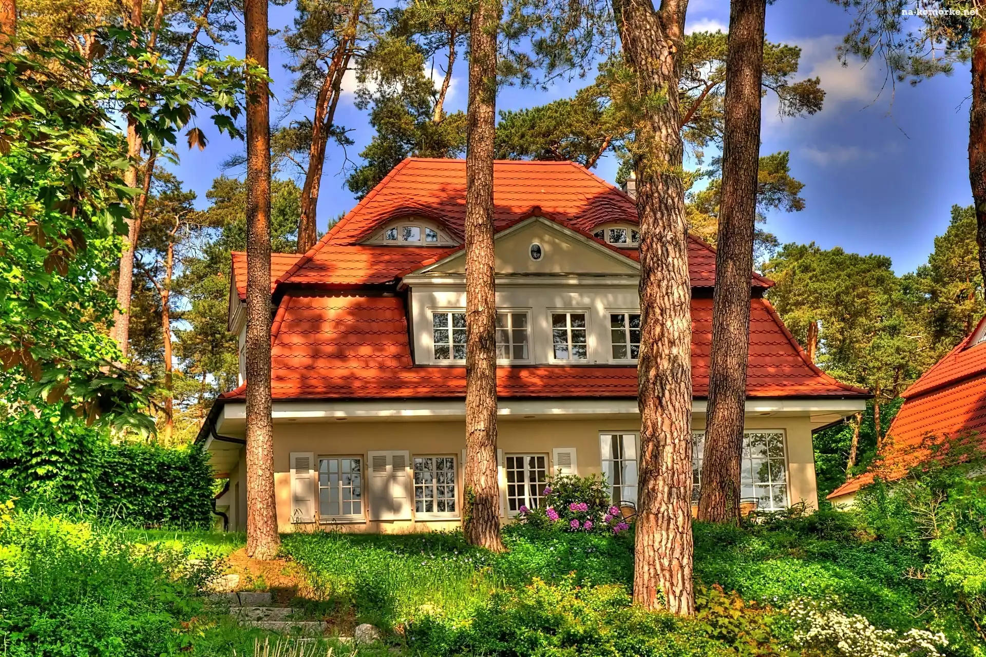 Światło, Wiosna, Las, Domy, Przebijające na Komórkę
