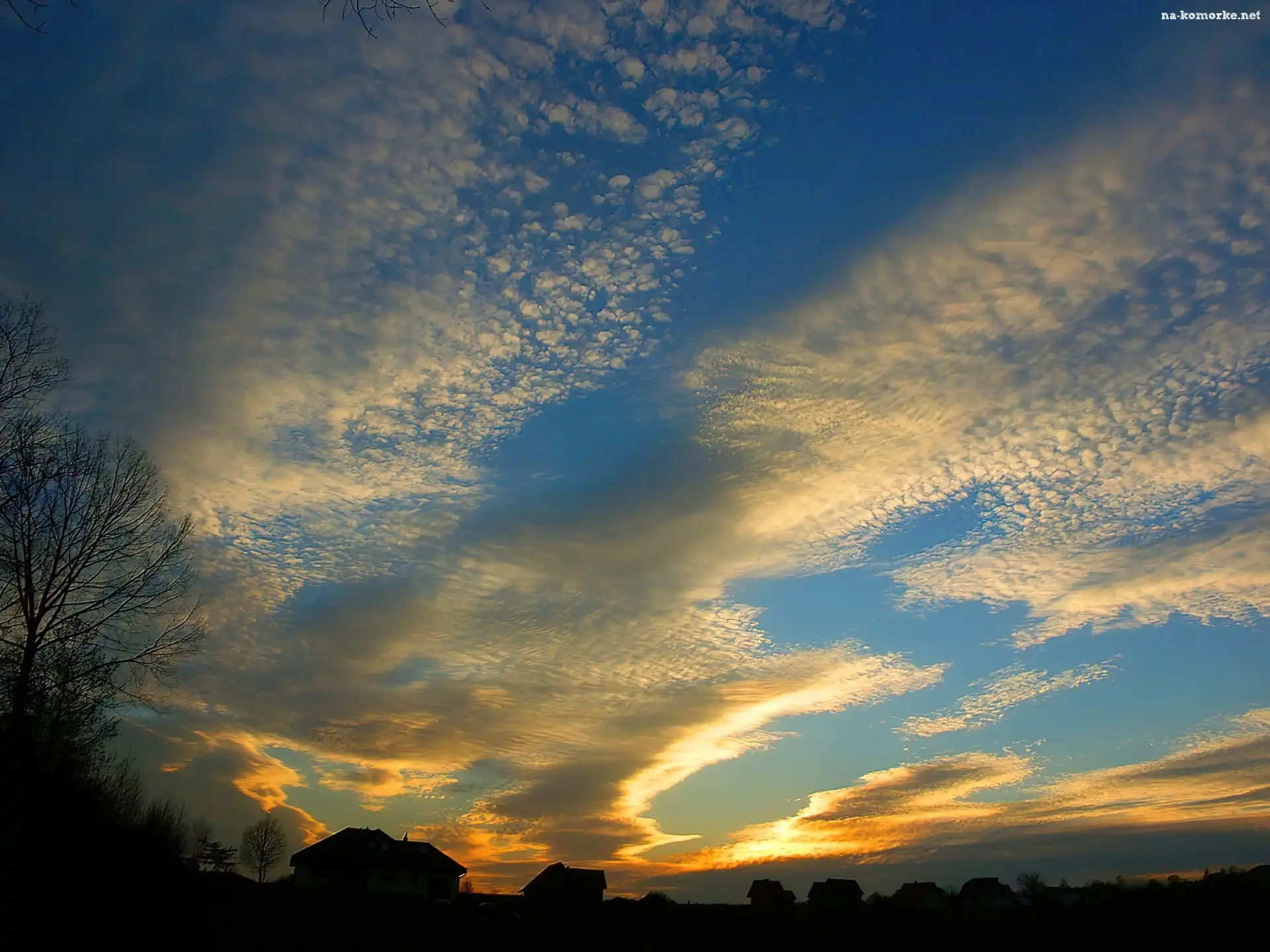 Domy, Niebo, Chmury, Zachód, Słońca na Komórkę